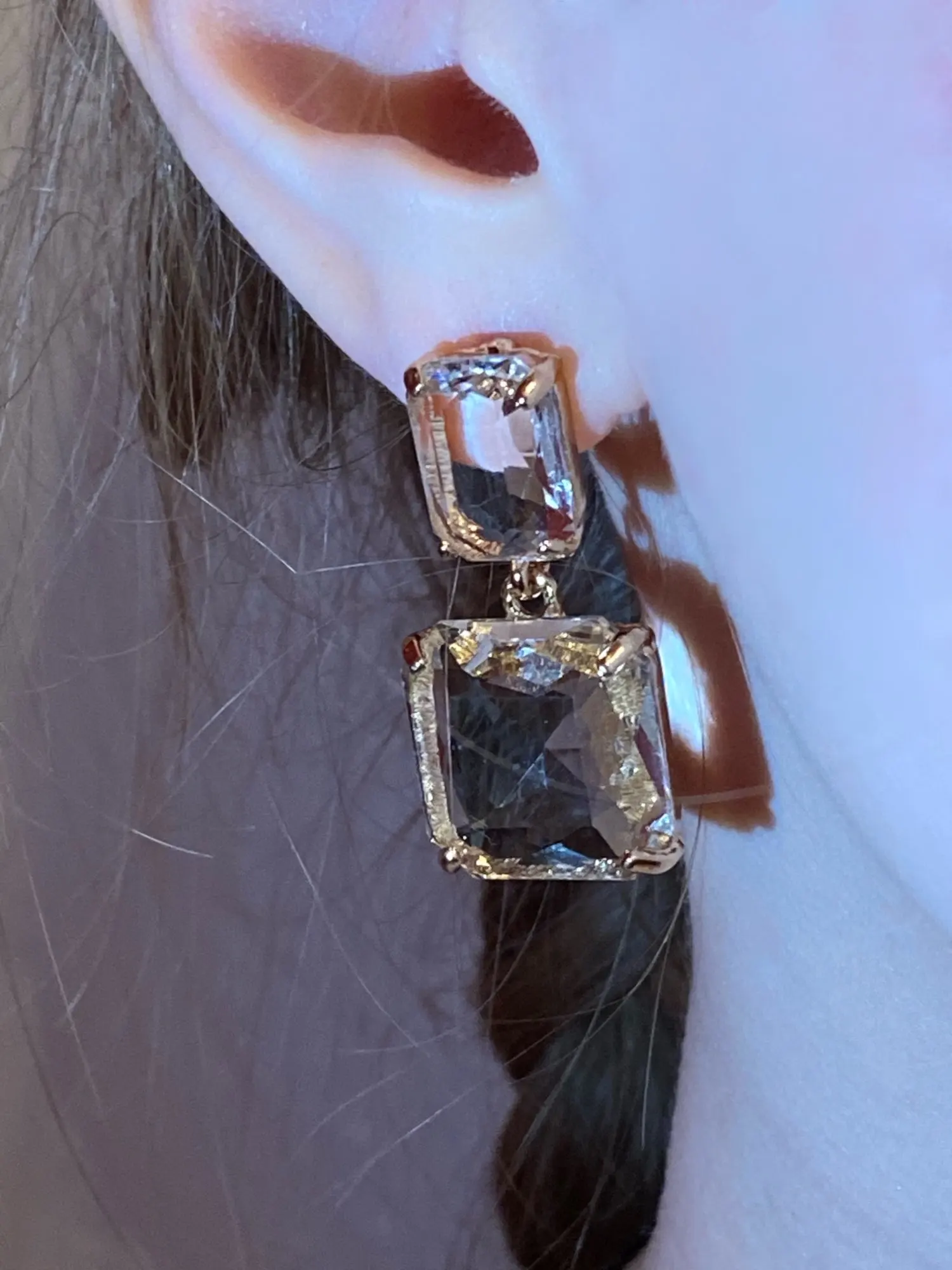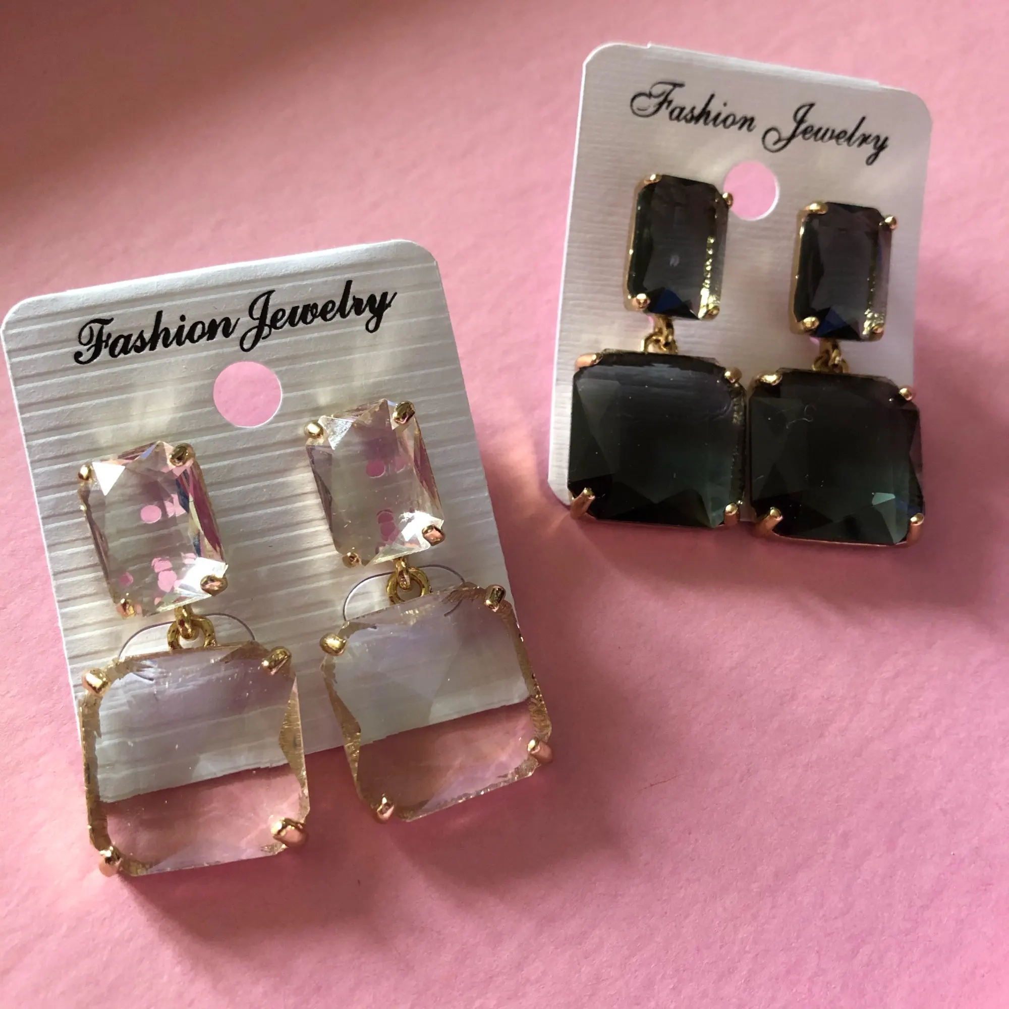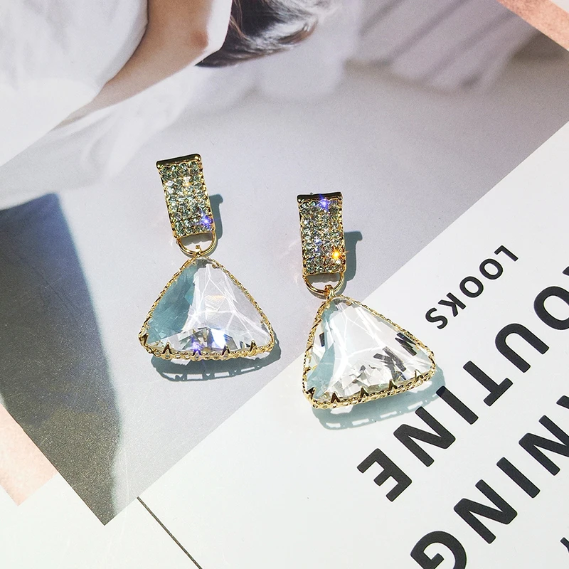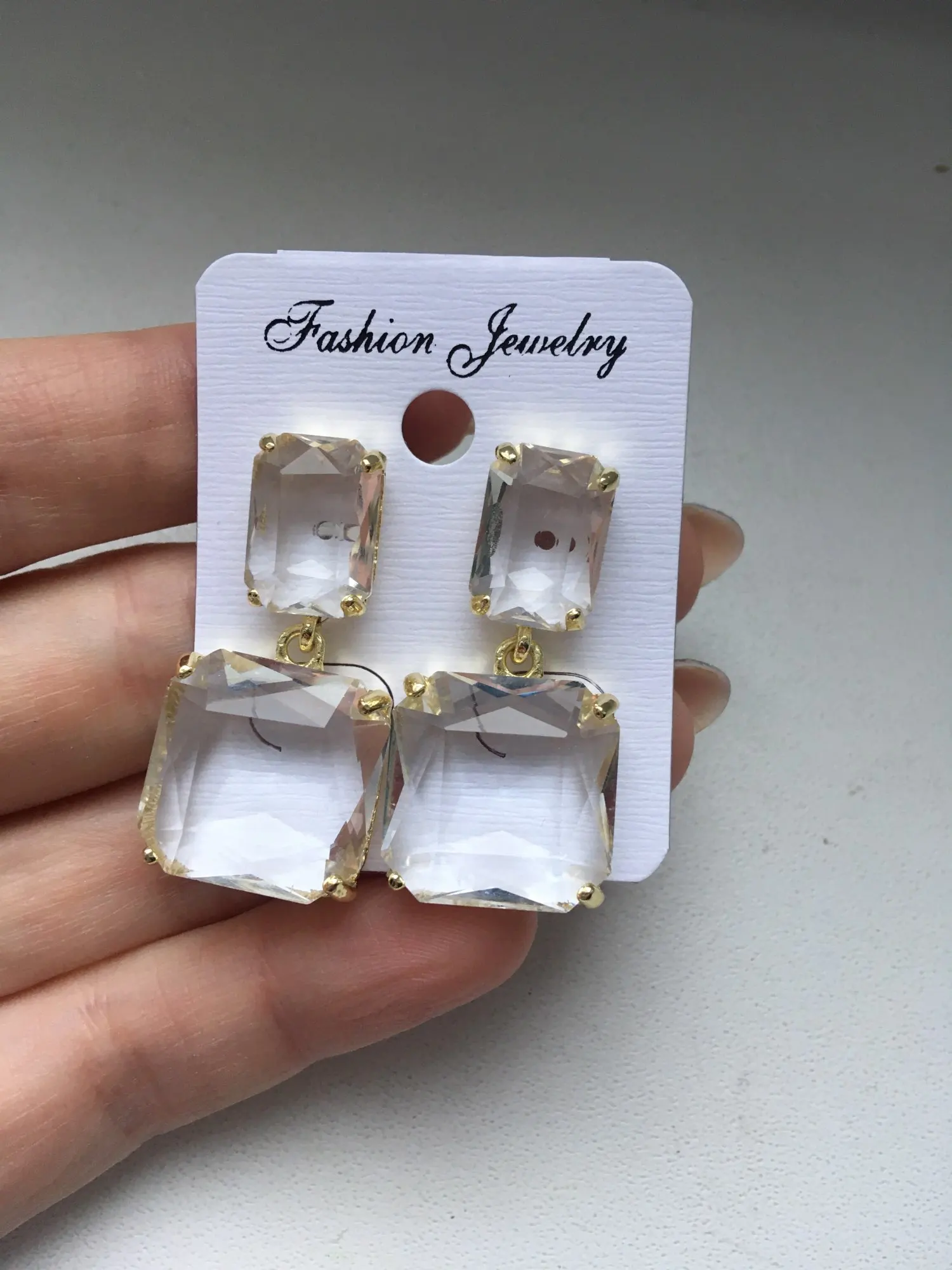 Корейские новые дизайнерские модные украшения, двойные квадратные серьги, роскошные прозрачные стеклянные вечерние серьги с кристаллами для женщин, подарок
