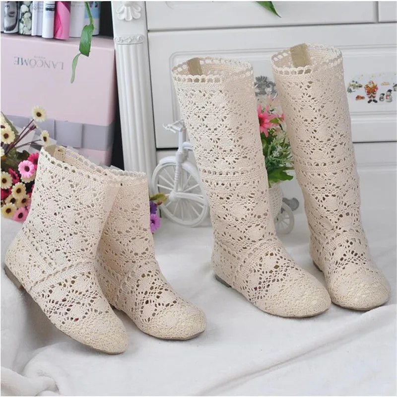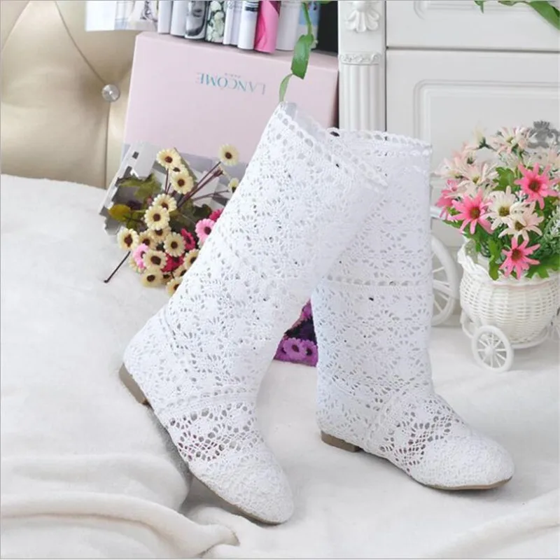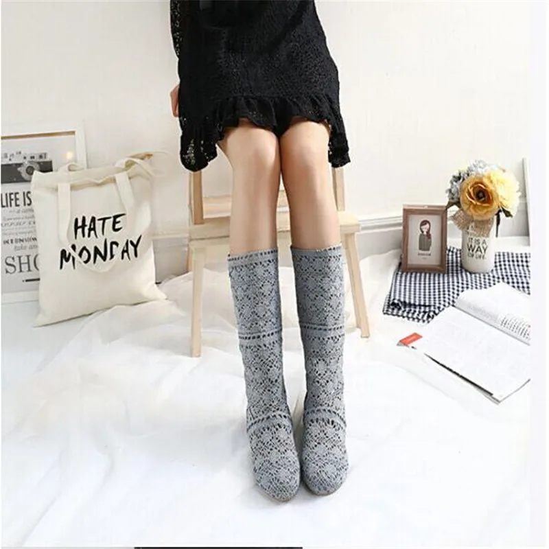 Ажурные ботинки на шнуровке, 11 цветов дышащие сетчатые модные летние женские сапоги до колена на высоком каблуке