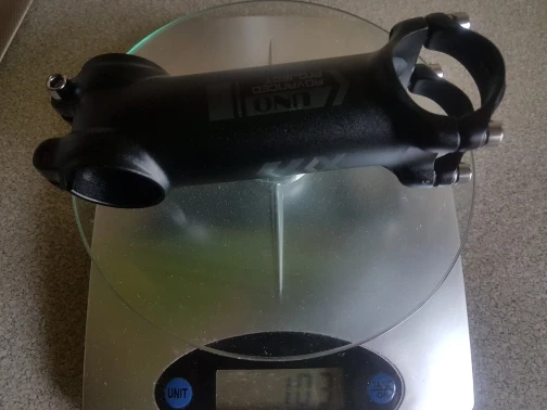Всего лишь 94 грамма в качестве 80 мм длинного стержня, сохраненный до 90 граммов по сравнению с тем, который был доставлен на моем велосипеде. Острых кромок в любом месте не было, и все винты были немного смазанны