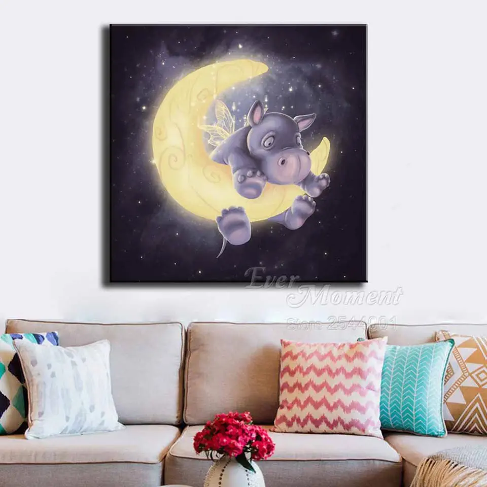 Алмазная живопись в стиле хиппота с Луной Стразы