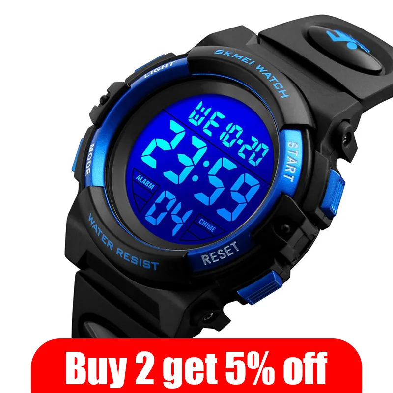 2020 SKMEI многофункциональные спортивные часы с хронографом Детские светодиодные цифровые часы 5 бар водонепроницаемые детские наручные часы для мальчиков и девочек