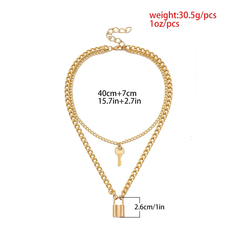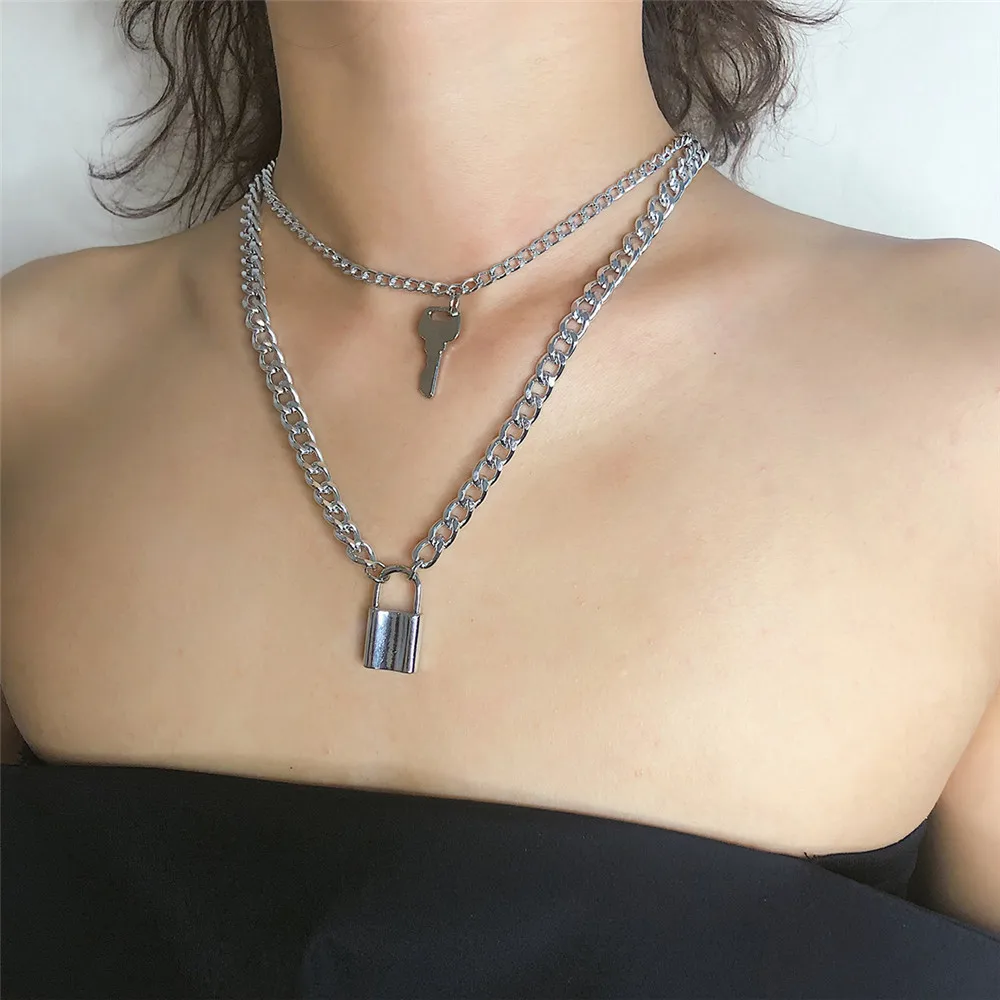 Ожерелье с подвеской висячий замок женское, модное многослойное оже...