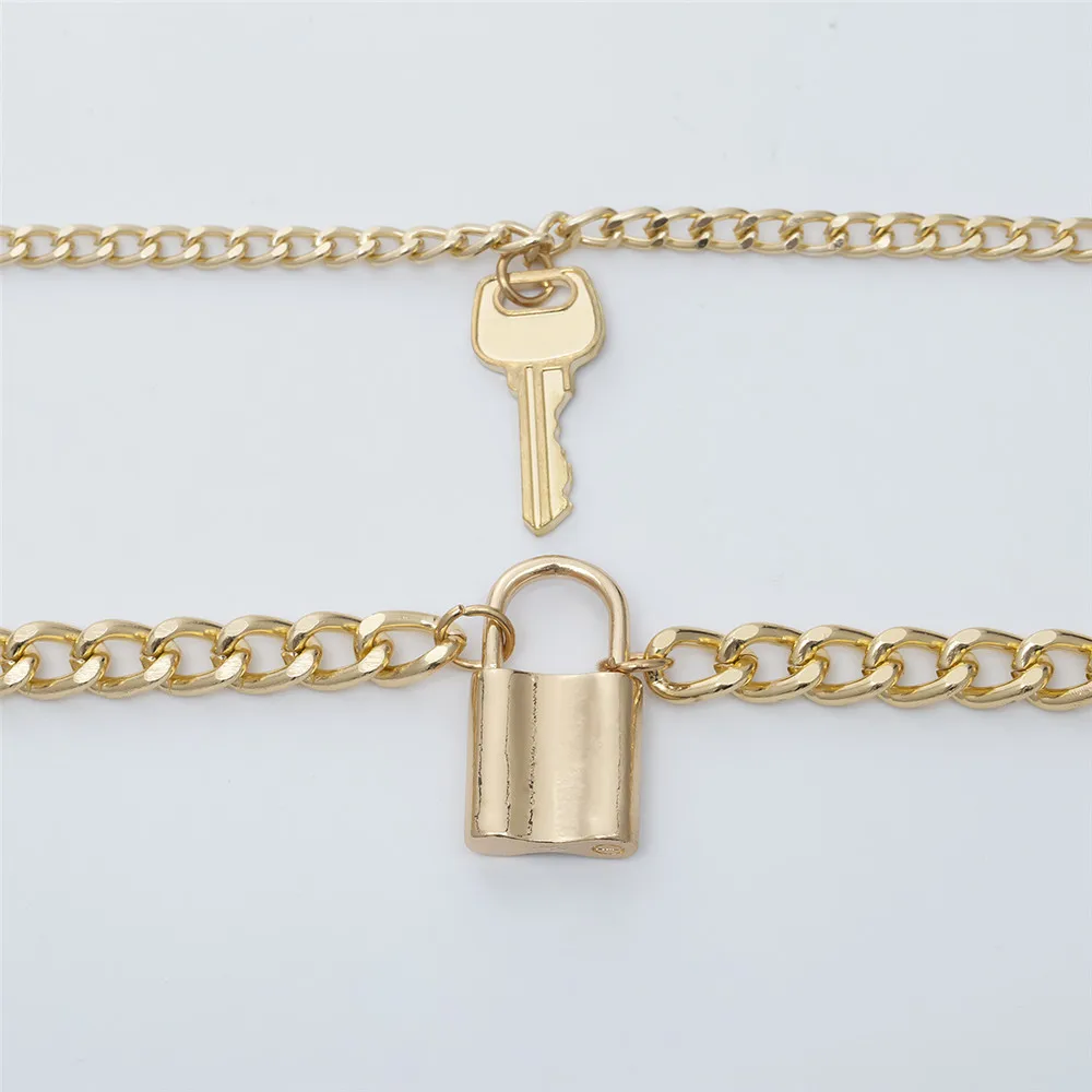 Bls-miracle, золотое, серебристого цвета бохо, замок для ключей, толстая цепочка, подвеска, длинное ожерелье для женщин, винтажные, вечерние, модные ожерелья, ювелирные изделия