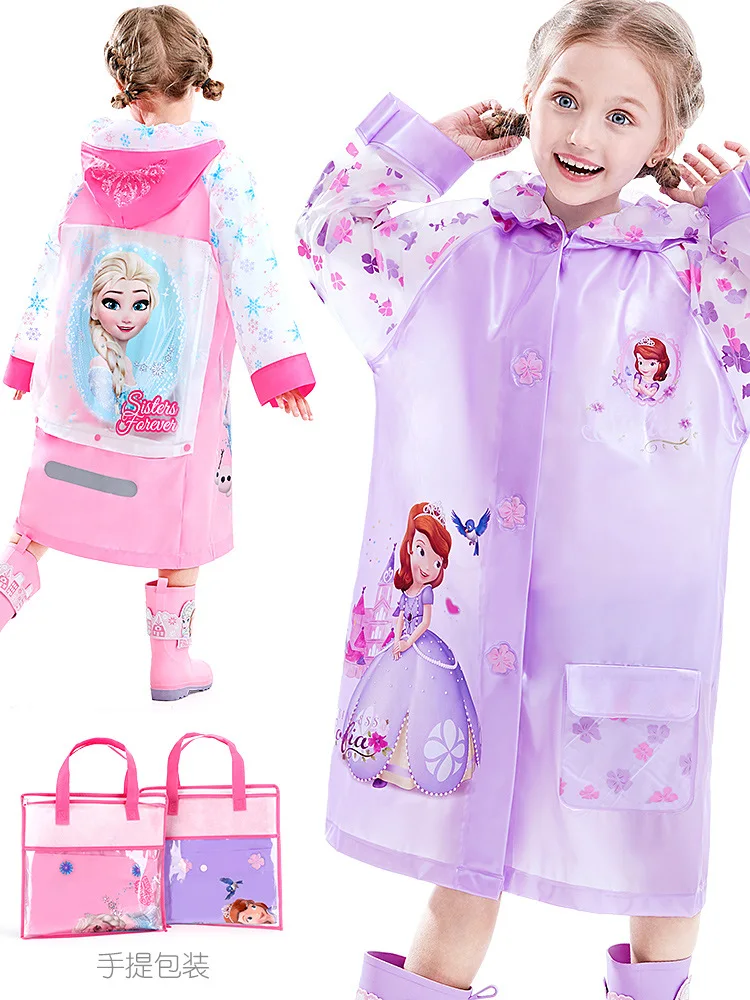 Синий плащ-дождевик, школьная сумка Принцессы Диснея, Анны и Эльзы,...