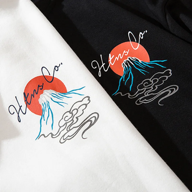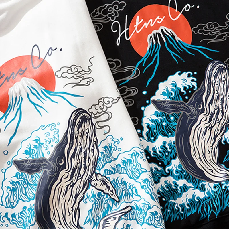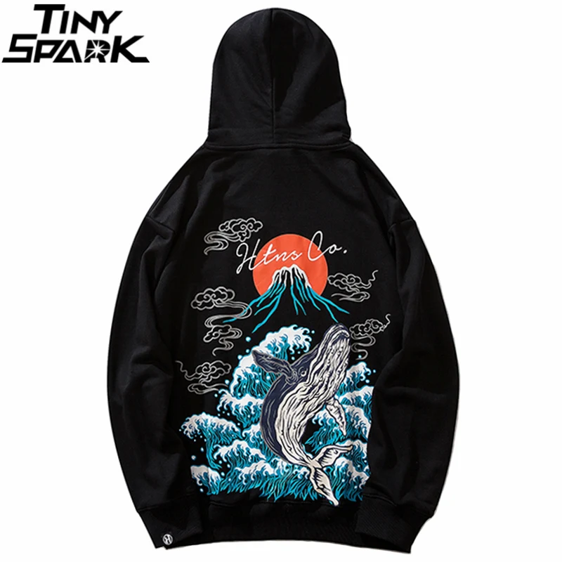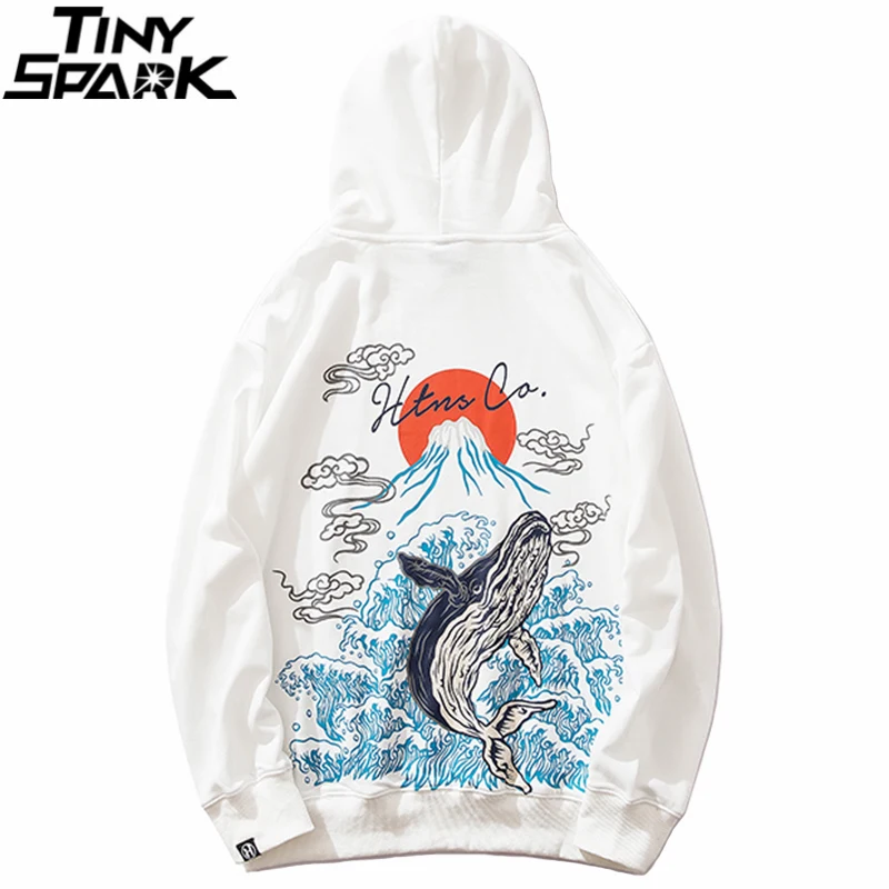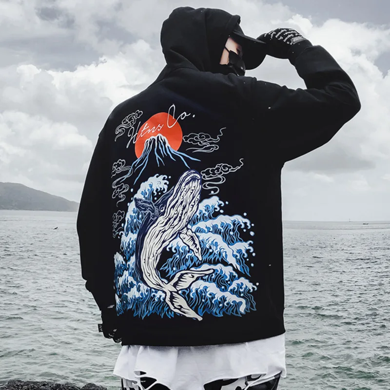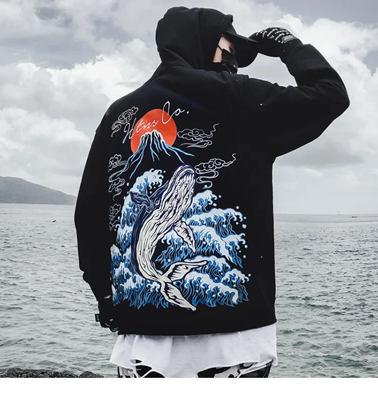 Мужская толстовка с капюшоном в стиле хип-хоп, уличная одежда Харадзюку, толстовка с принтом японского вулкана и Кита, пуловер, хлопковая толстовка, 2019 осень