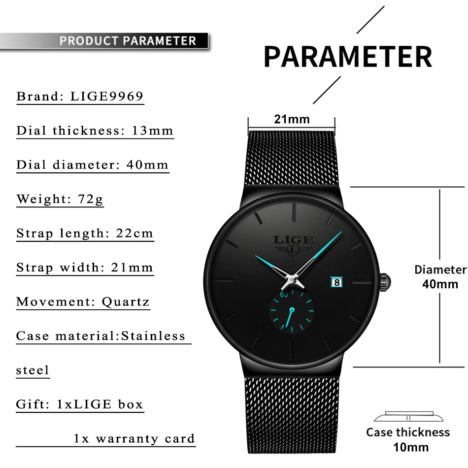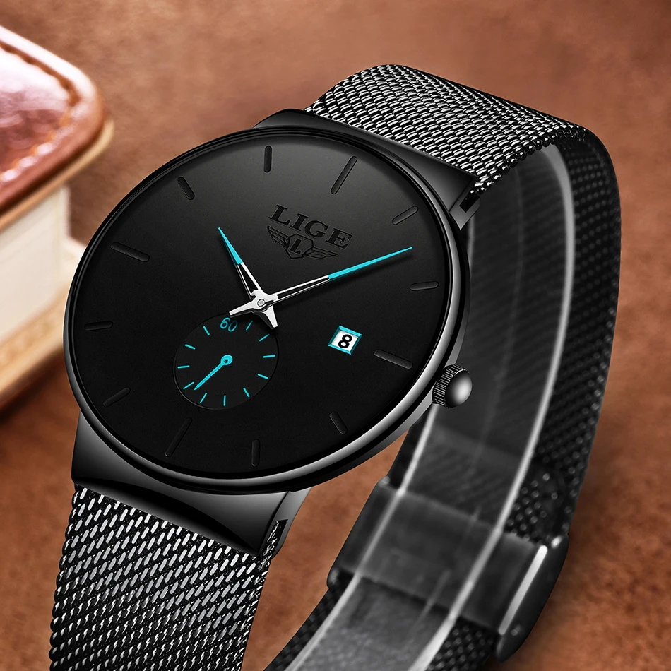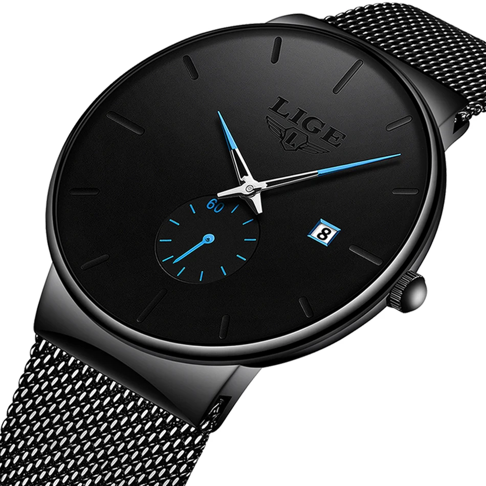 LIGE модные часы мужские водонепроницаемые тонкие сетчатые ремешок минималистичные наручные часы для мужчин кварцевые спортивные часы Relogio Masculino