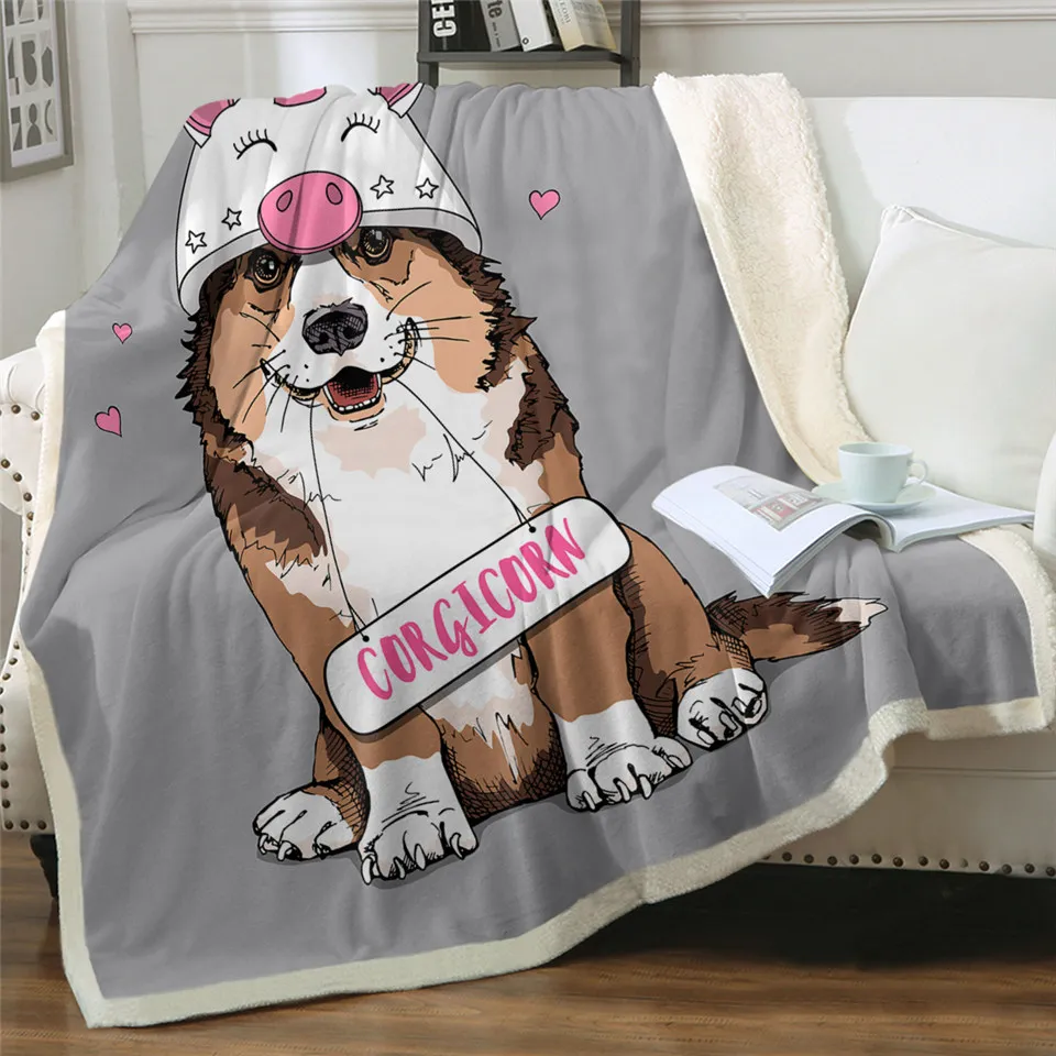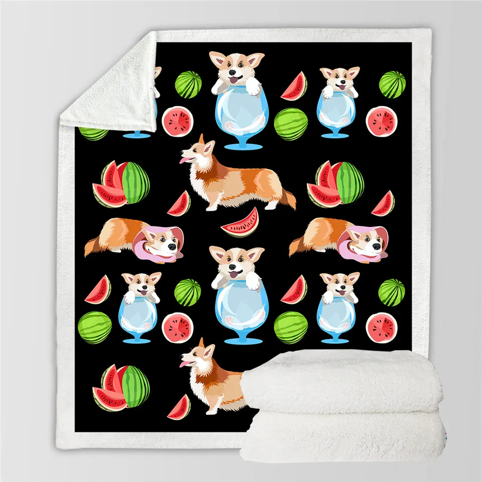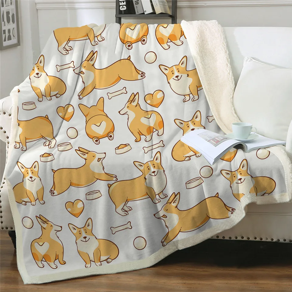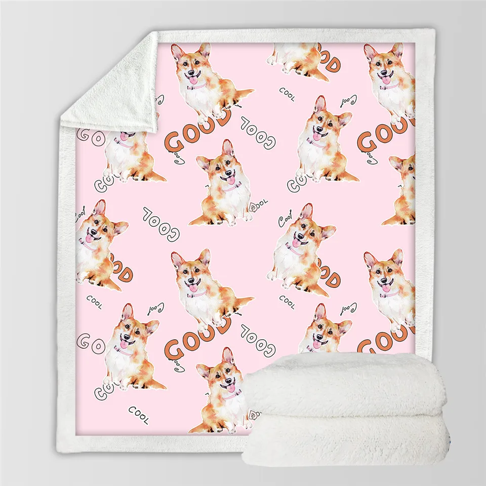 Постельные принадлежности на выход, пушистое одеяло корги, акварельные плюшевые постельные принадлежности, цветочное одеяло для собак, Детское покрывало с рисунком животных, Cobertor