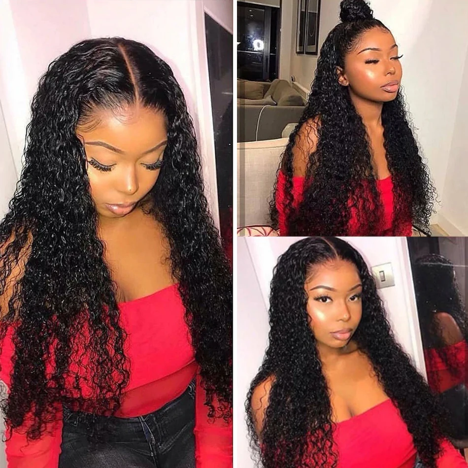 Кудрявый кудрявый парик на фронтальной сетке ANGIE QUEEN 100% парики из натуральных волос 4X4 парик на сетке без повреждений волосы 180 Плотность парики на сетке натурального цвета
