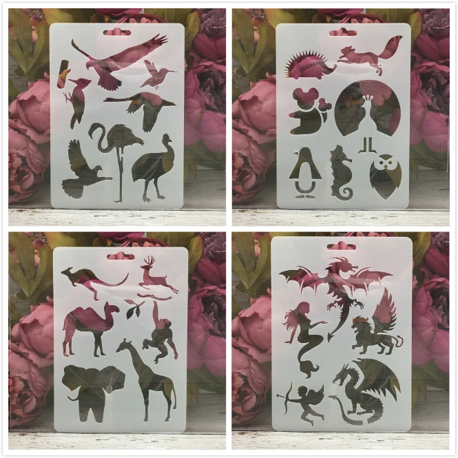 4 шт.компл. 17,8*12,7 см динозавр Жираф Животные DIY Многослойные трафареты раскраска для скрапбукинга тиснильный альбом декоративный шаблон