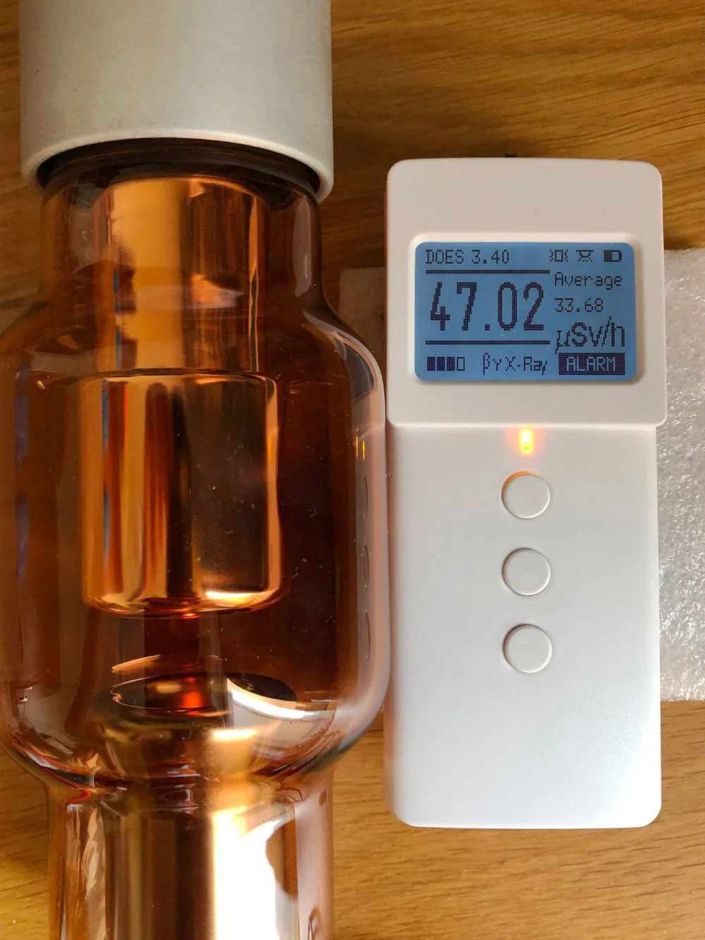 хороший приборчик, трескает щёлкает что-то показывает, на фонящих предметах ещё не проверял толком ( простой фон в пределах 0,15, купил калий у садоводов соль какая то, на ней показывает примерно 0.30) как придут датчики дыма проверю дополню отзыв, трубка стоит хуахэ с фольгой ( фольга кстати снизу чуть меньше закрывает трубку сверху чуть больше наверное не очень ровно наклеили) в руках лежит не очень удобно так как маленький и скользкий жалко что нет силиконого чехла как для телефонов от ударов и скольжения, задняя крышка сидит жидковато просто на защелках, по результатам проверки и сравнения с "кирпичем" дополню отзыв