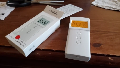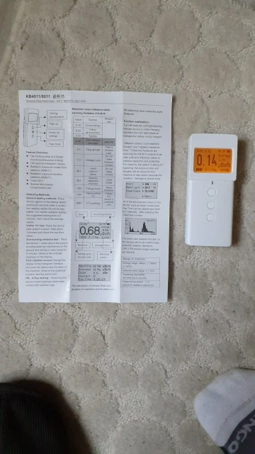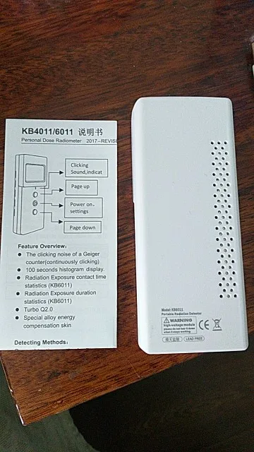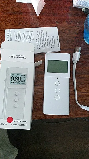 От момента оплаты заказа (15.11.2020) до получения посылки (12.01.2021) прошло почти два месяца! Дождался, ура! Товар соответствует описанию, есть инструкция на английском и китайском языках. Прибор показывает естественный фон и хорошо, значит нет поводов для беспокойства.