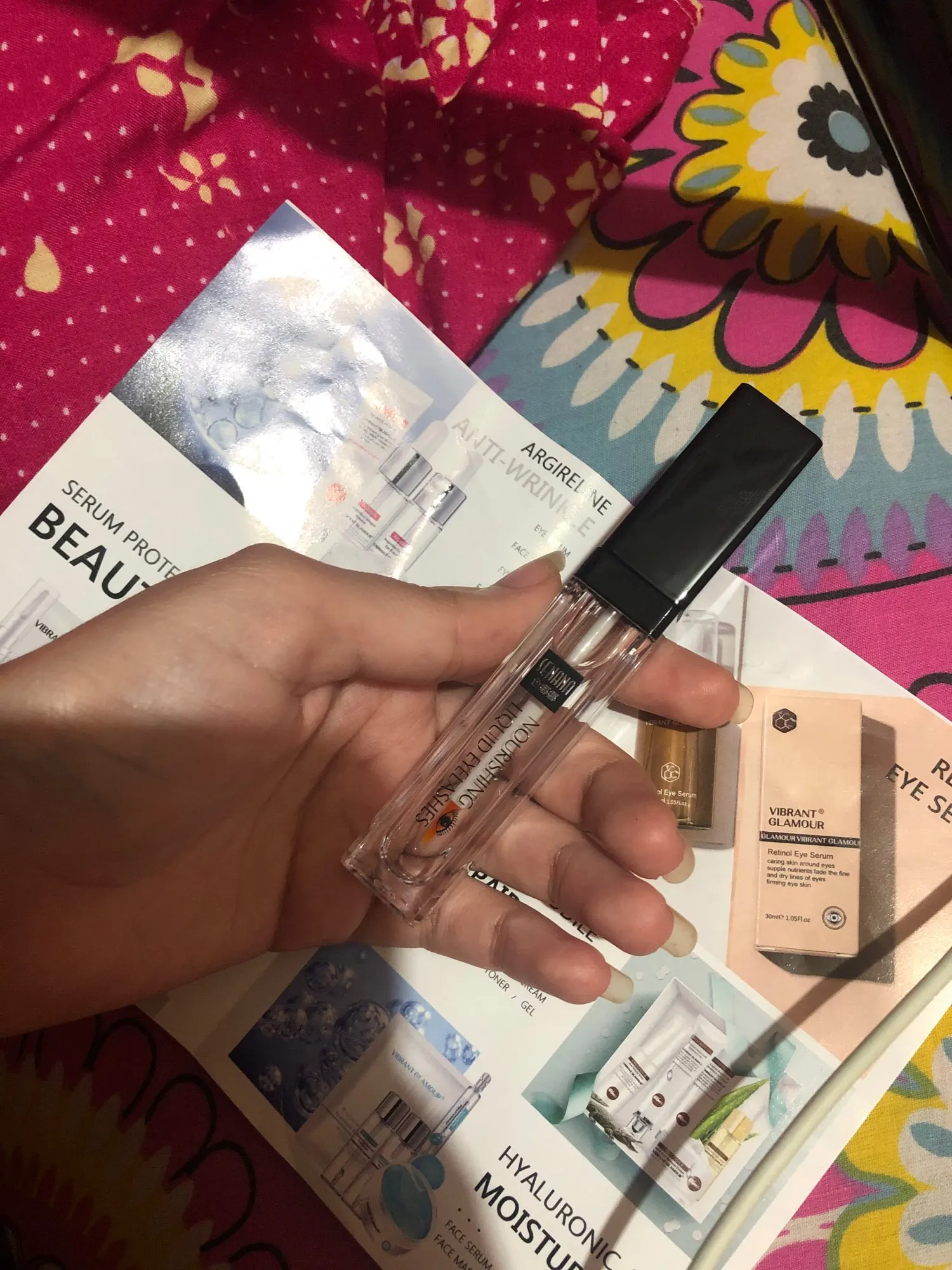 Получила, использую неделю. Пока никакого эффекта, жидкость без запаха,как водичка. Мажу два раза в день, утром и вечером. Возможно, результаты будут позже, тогда напишу дополнительно.