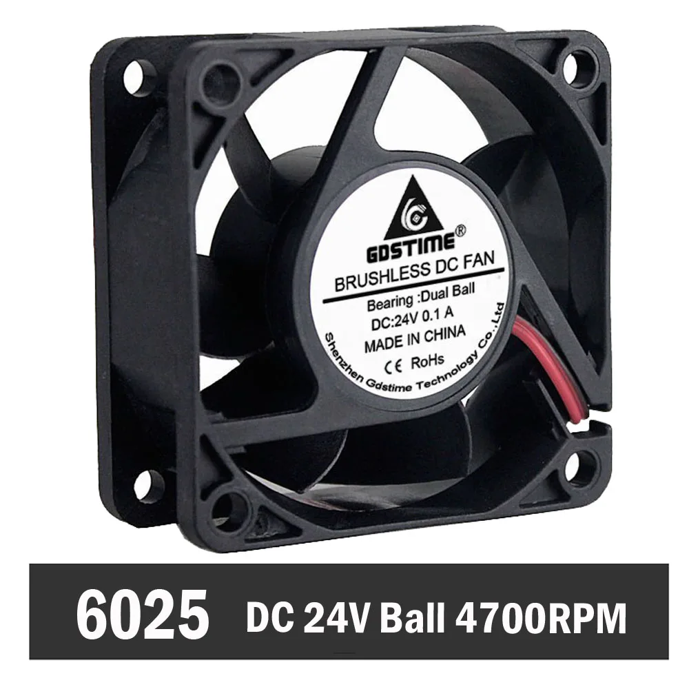 10 шт., бесшумный вентилятор Gdstime 24 В постоянного тока 60 мм 60x60x25 мм, шариковый подшипник 24 в 0,1 А, чехол для процессора, вентилятор охлаждения 6025