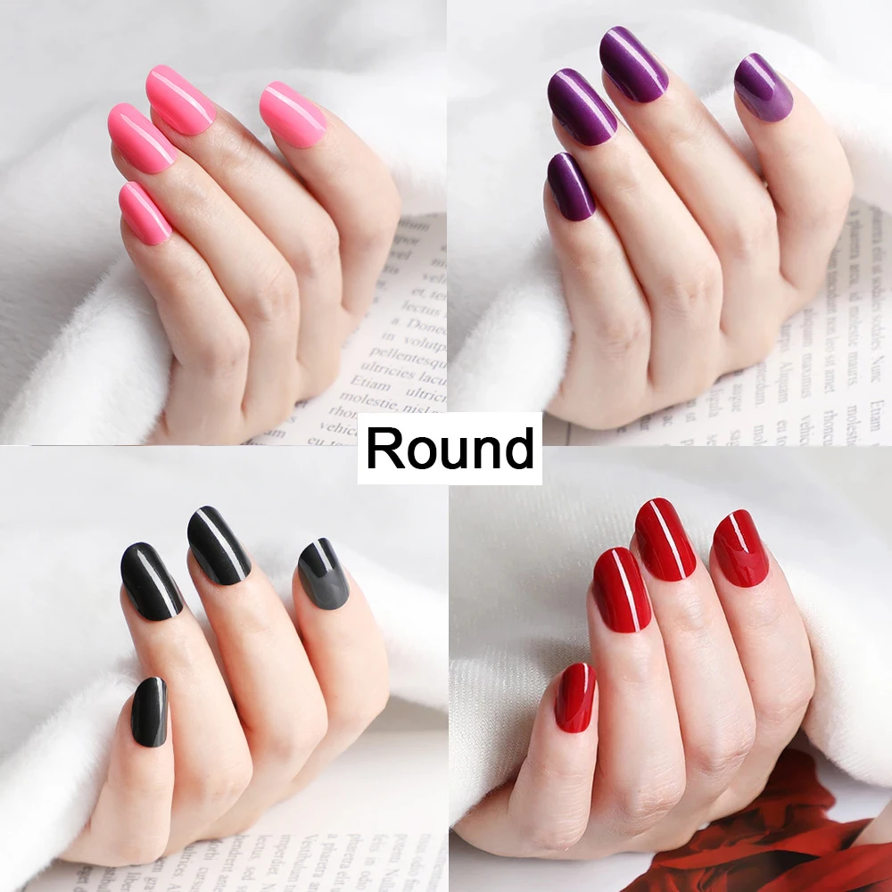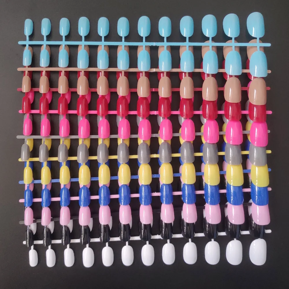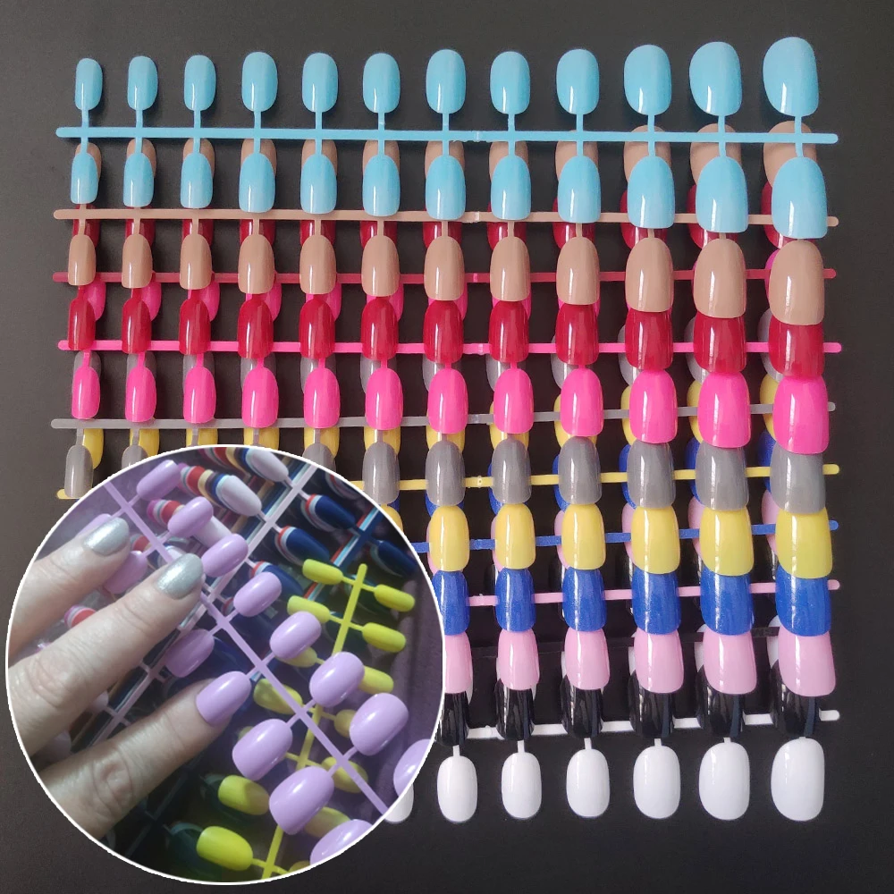Накладные ногти круглые цветные, Типсы для накладных ногтей, 10 размеров, для самостоятельного акрилового прессования на типсах, 5 наборов по 24 штуки в упаковке