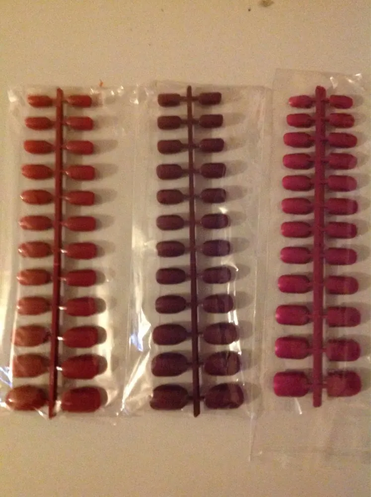 Эти ногти Потрясающие! Тонкий, но прочный! Сначала я думал, что цвет очень коричневый, но мне очень нравится, как они выглядят на моих руках. Я надел их клеем для ногтей, и они длились не менее двух недель. Я надел слой прозрачного лака для ногтей, чтобы защитить блеск. Эти ногти легко настраиваются, чтобы сделать их длиной, которая вам нравится, с парой кусачек для ногтей. Я поставлю другой заказ!