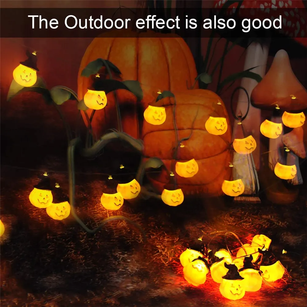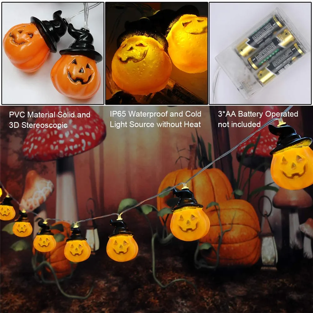 Гирлянда на Хэллоуин с изображением тыквы и особым выражением лица идеально подходит для украшения тыквы на Хэллоуин. Она может создать жуткую атмосферу Хэллоуина.
