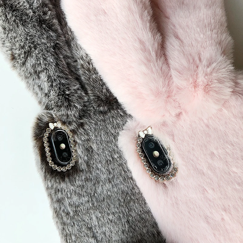 Кроличьи уши мех плюшевый милый 3D Алмазный чехол для телефона для ...