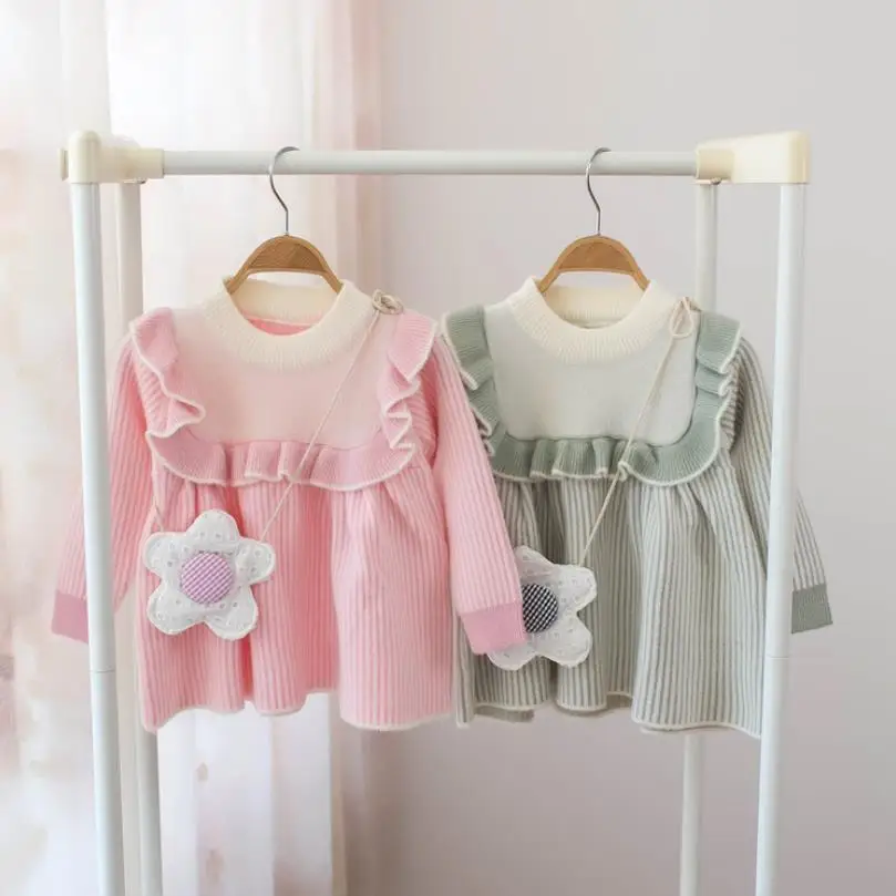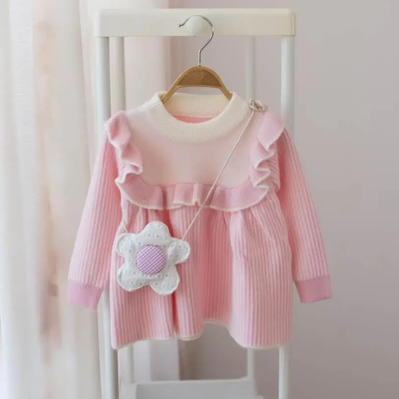 Новый теплый вязаный свитер для новорожденных девочек осенне-зимнее платье, одежда топы для малышей, рубашки для девочек, шерстяные рождественские платья