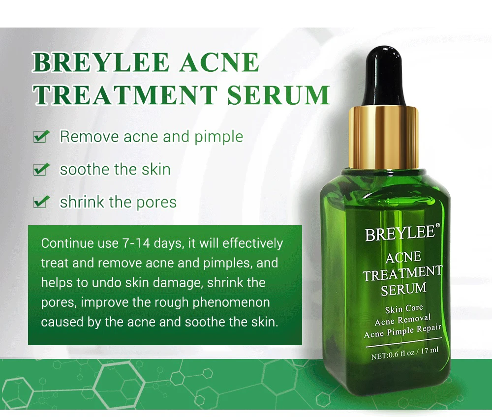Лечебная Сыворотка от акне BREYLEE для удаления акне и прыщей успокаивает кожу сужает поры Продолжайте использовать 7-14 дней, она эффективно лечит и удалит акне и прыщи, а также помогает отменить повреждения кожи, сужение пор, улучшение огрубевшего явления, вызванного акне, и успокоение кожи.