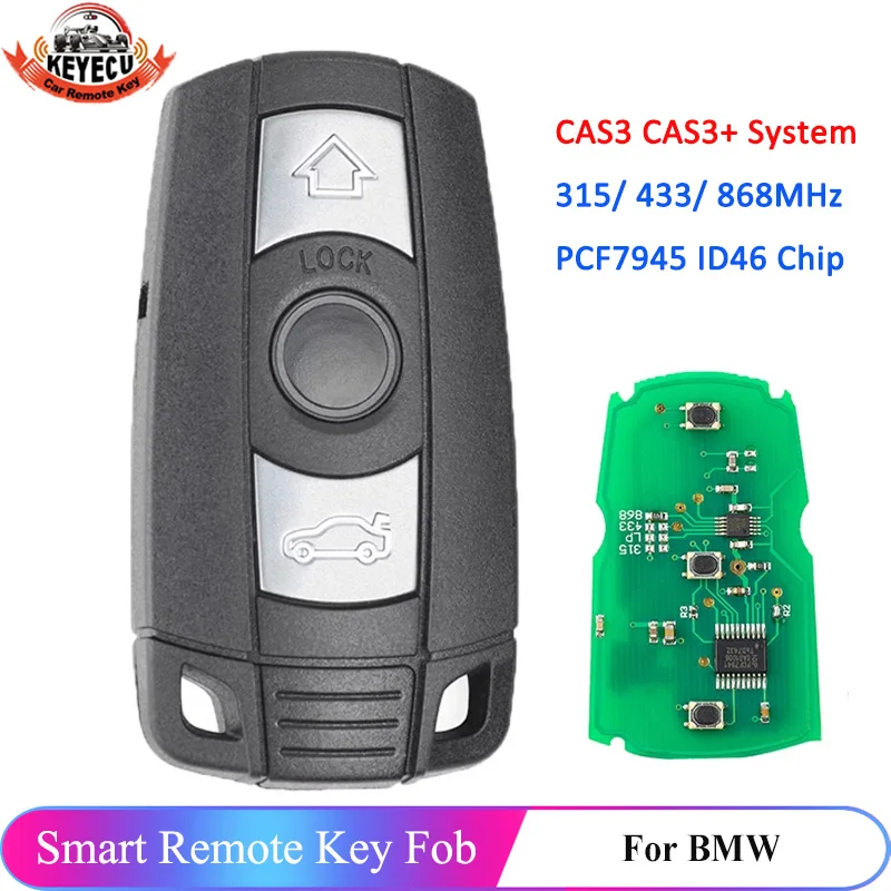 Дистанционный ключ KEYECU с 3 кнопками 315 МГц433 МГц868 МГц для BMW серий 1357 CAS3 X5 X6 Z4, чип передатчика управления автомобилем ID46 PCF7945
