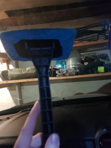 Полезное и главное очень удобное устройство для протирки лобового окна (внутри). Никогда так быстро и легко не мыла его. Тряпочка-обычная дишманская фибра на резинке. Со своей задачей справляется.