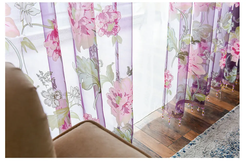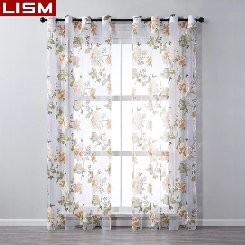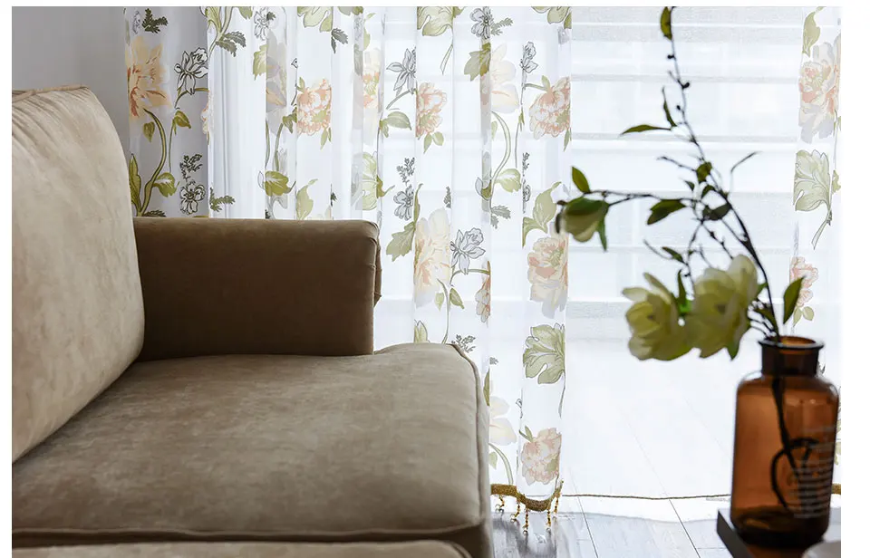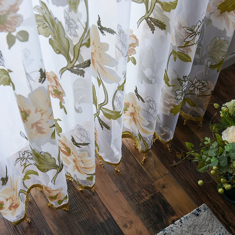 Тюлевые шторы с цветочным принтом для гостиной, спальни, кухни
