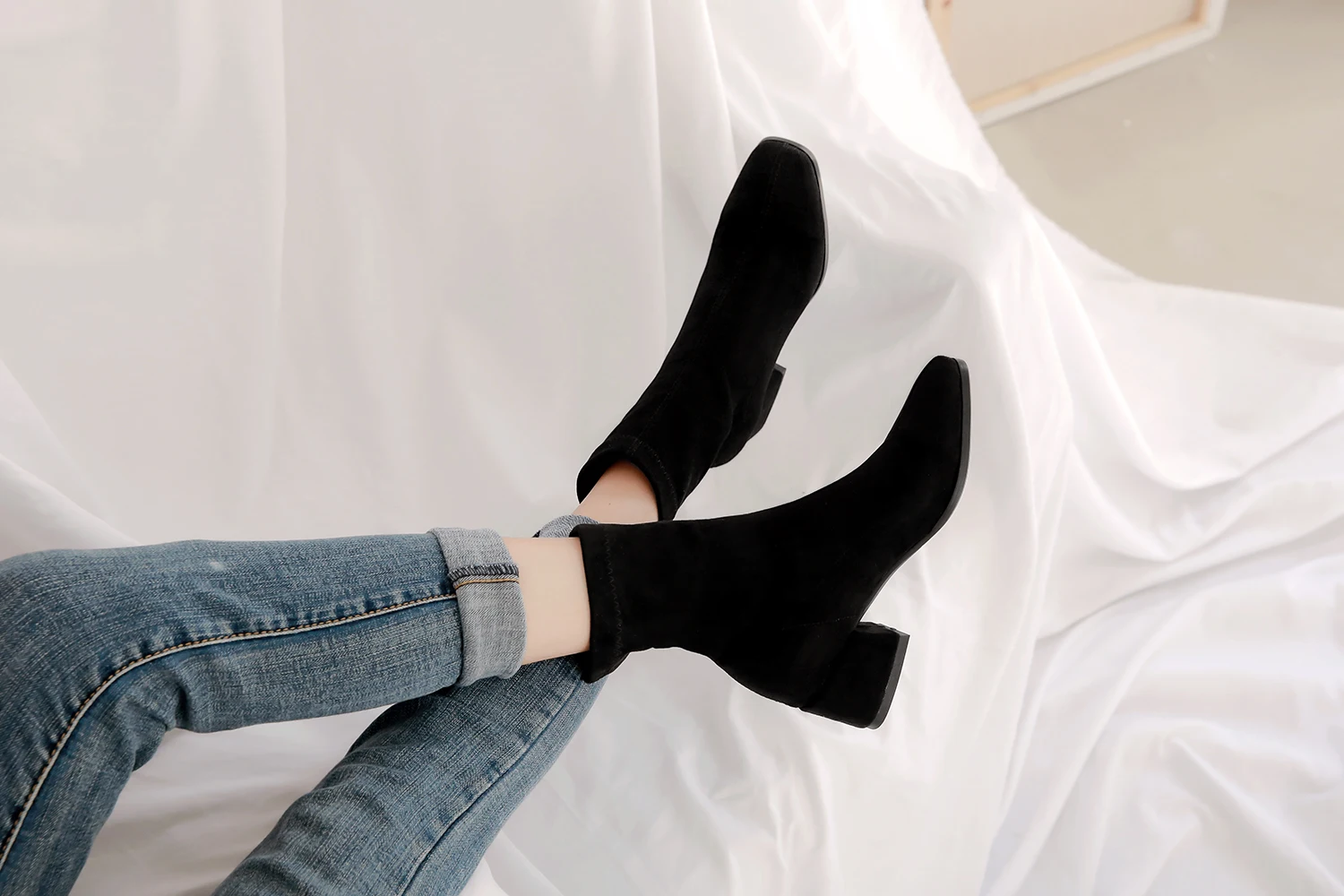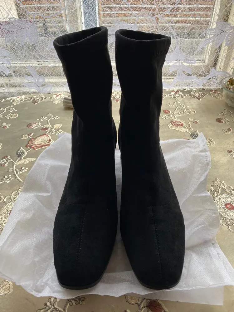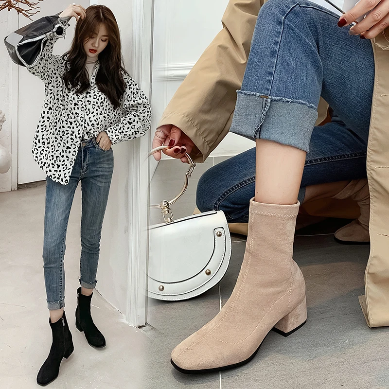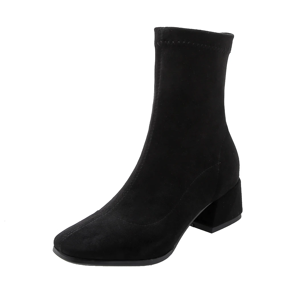 Ботинки женские из флока, на молнии, с квадратным носком, большие размеры 33-43, Осень-зима, 2021