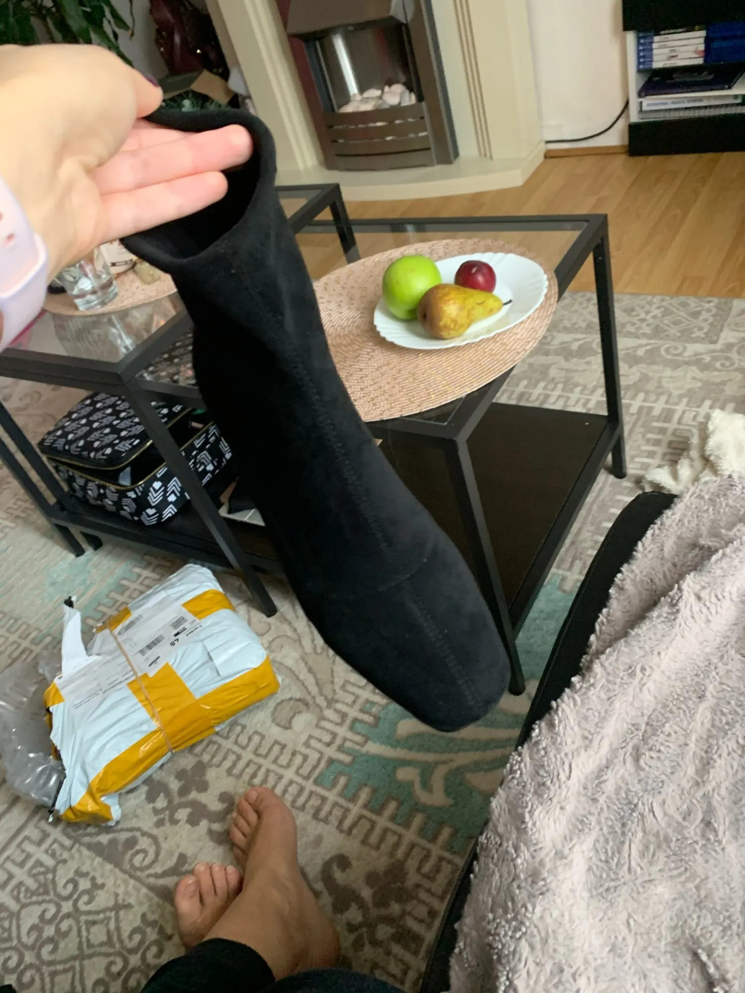 Здравствуйте.Сапоги получила,но,я заказывала зимние.А пришли осенние.Сильный запах.По ноге сели хорошо . хотелось бы конечно зимние. С продавцом не общалась.