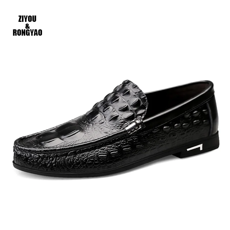 Туфли мужские, лоферы, кожаные мокасины, обувь в стиле крокодиловой...