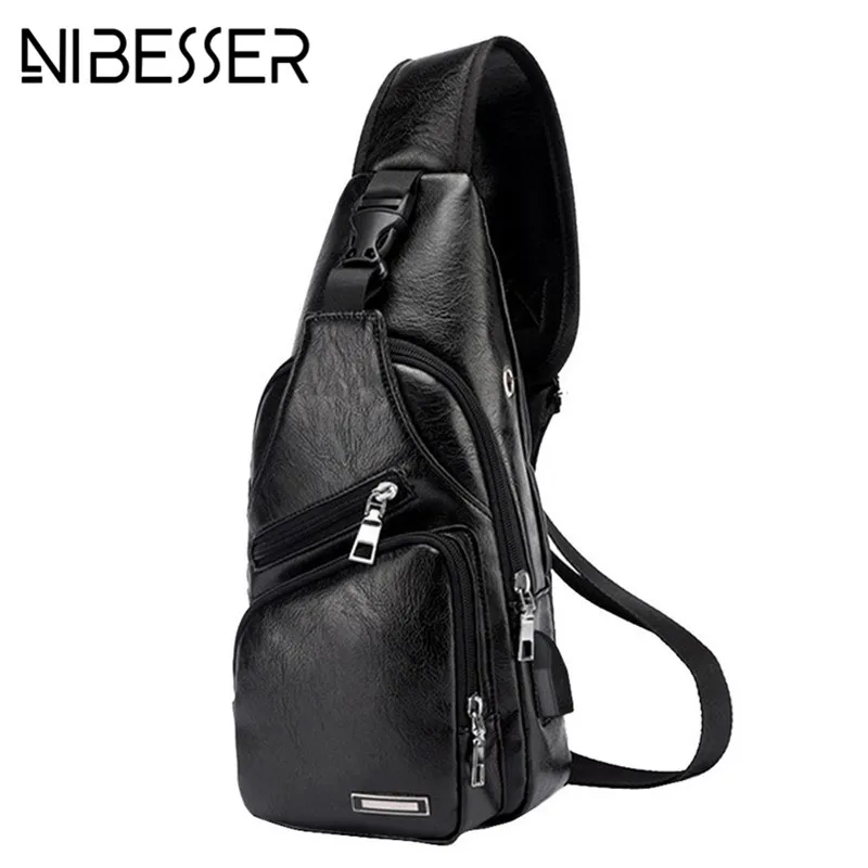 NIBESSER Мужская нагрудная сумка, мужская кожаная нагрудная сумка с usb-разъемом для наушников, дорожный Органайзер, мужская сумка