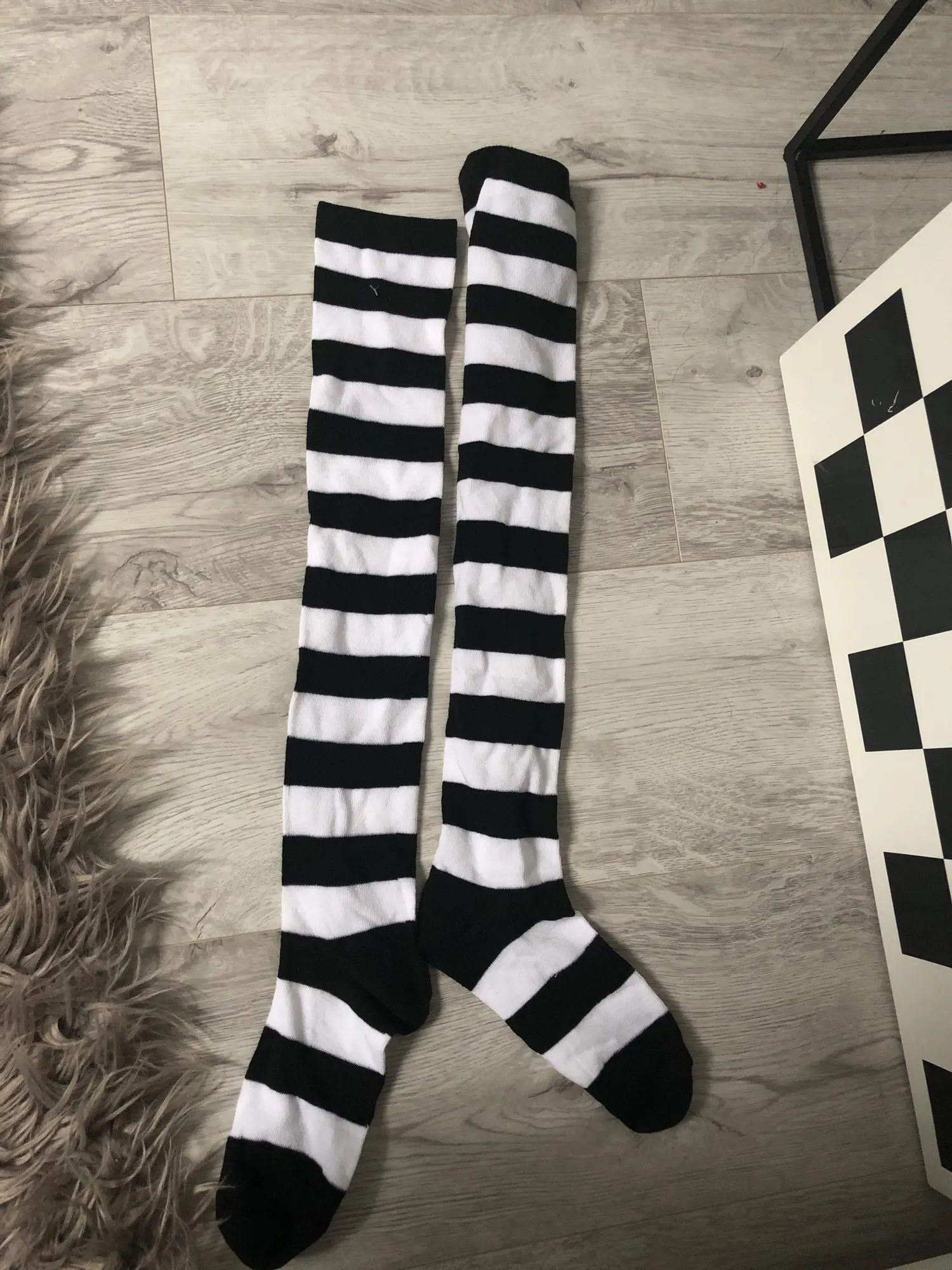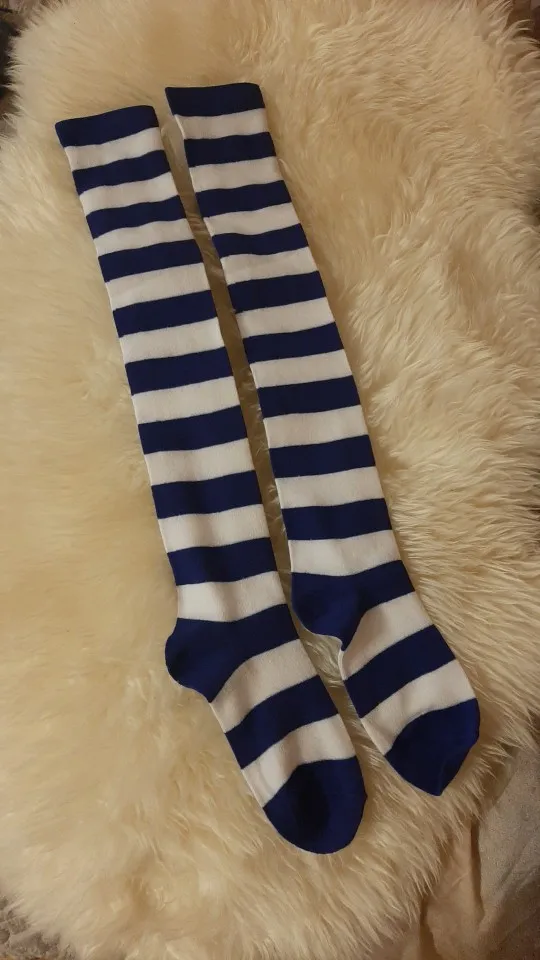 Женские длинные колготки выше колена, черные, белые, синие, красные, в полоску, высокие, для девочек, для косплея, студентов, колготки "кавай", Мультяшные колготки