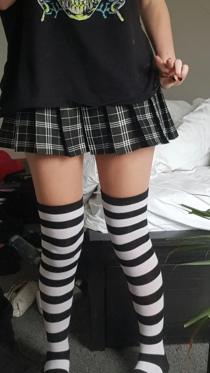 Это именно то, что я искала :) в отличие от большинства моих носков до бедра, они вязаные и не такие эластичные, но все еще достаточно эластичные, чтобы носить выше колен, так что это не проблема! Я 5'8, если это поможет :)