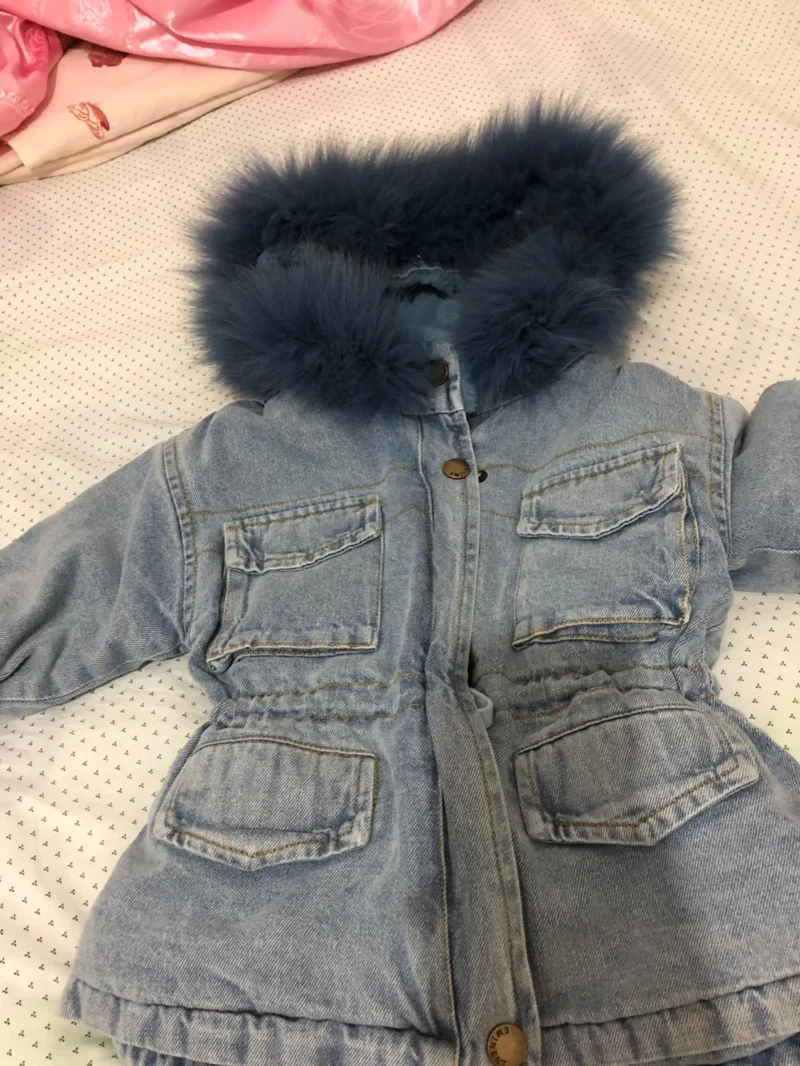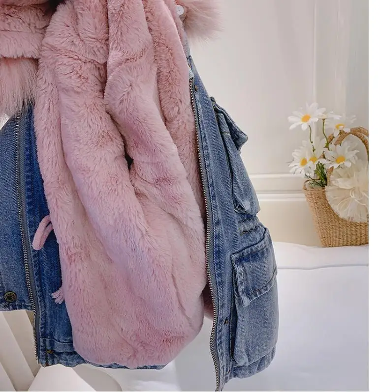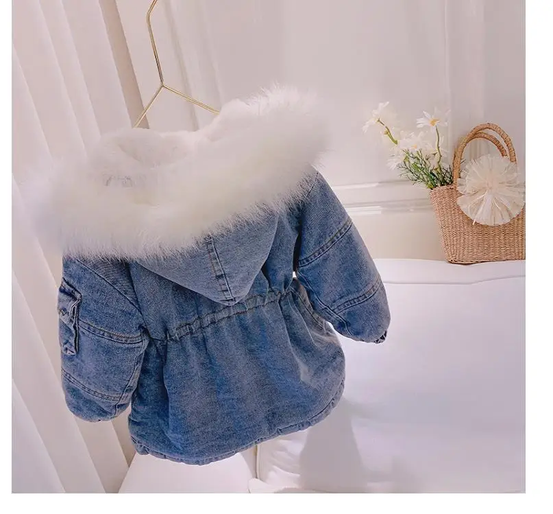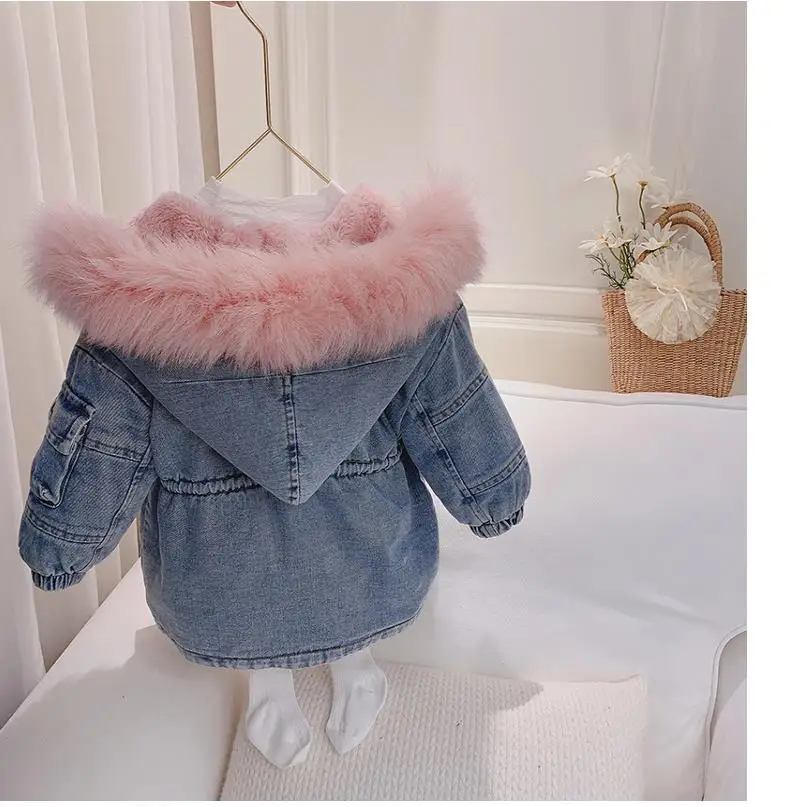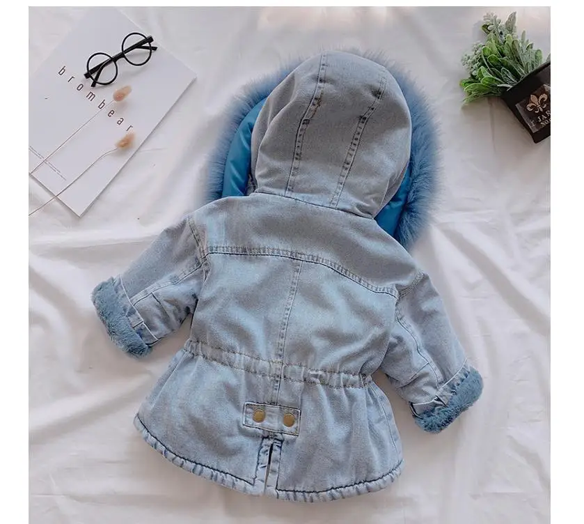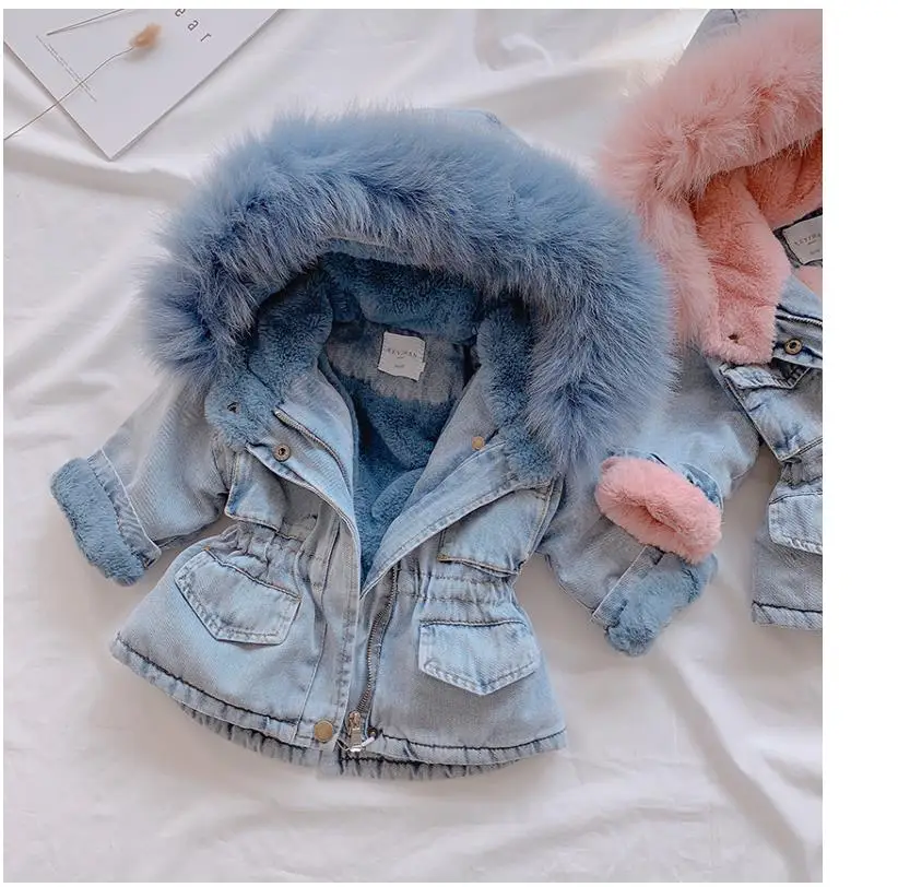 OLEKID2019 г. Зимняя джинсовая куртка для маленьких девочек, бархат...