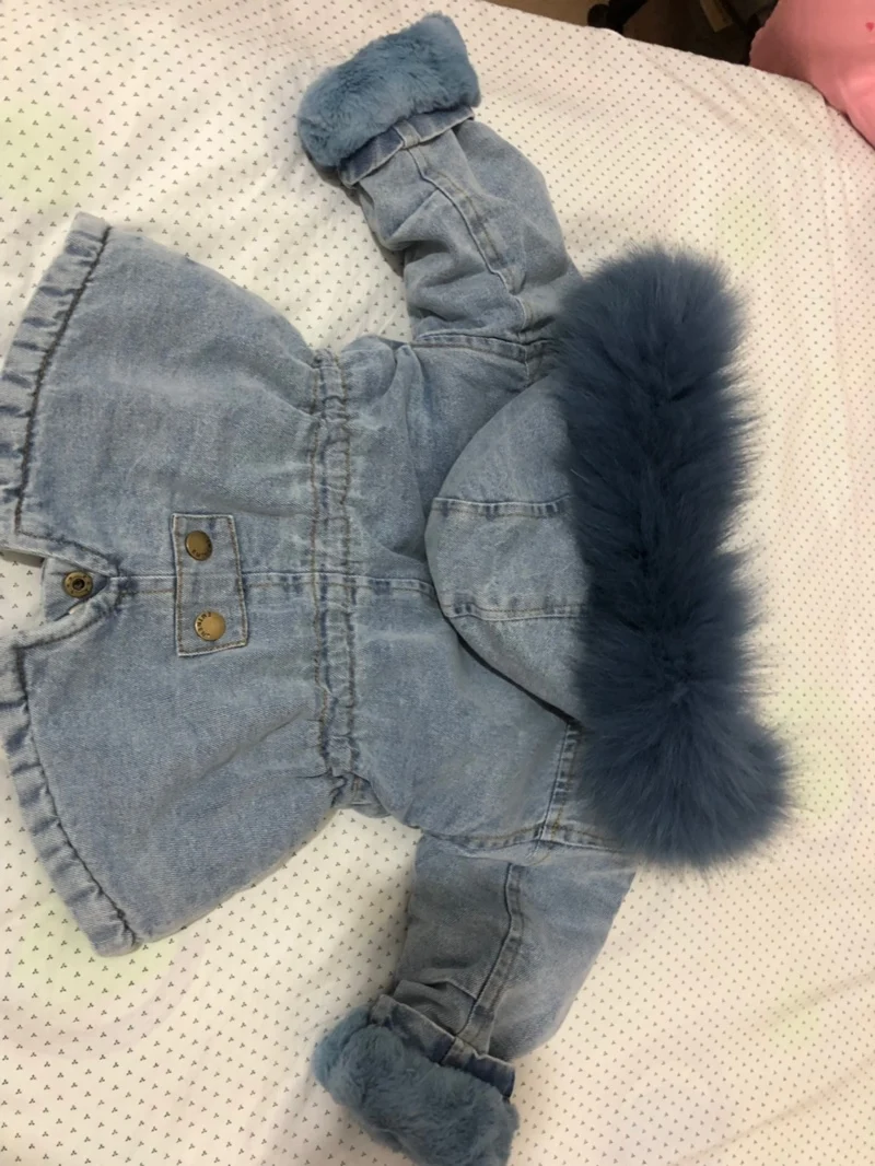 Зимние джинсовые куртки для маленьких девочек, Вельветовая утепленн...