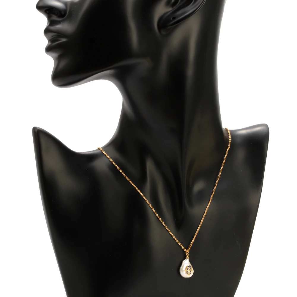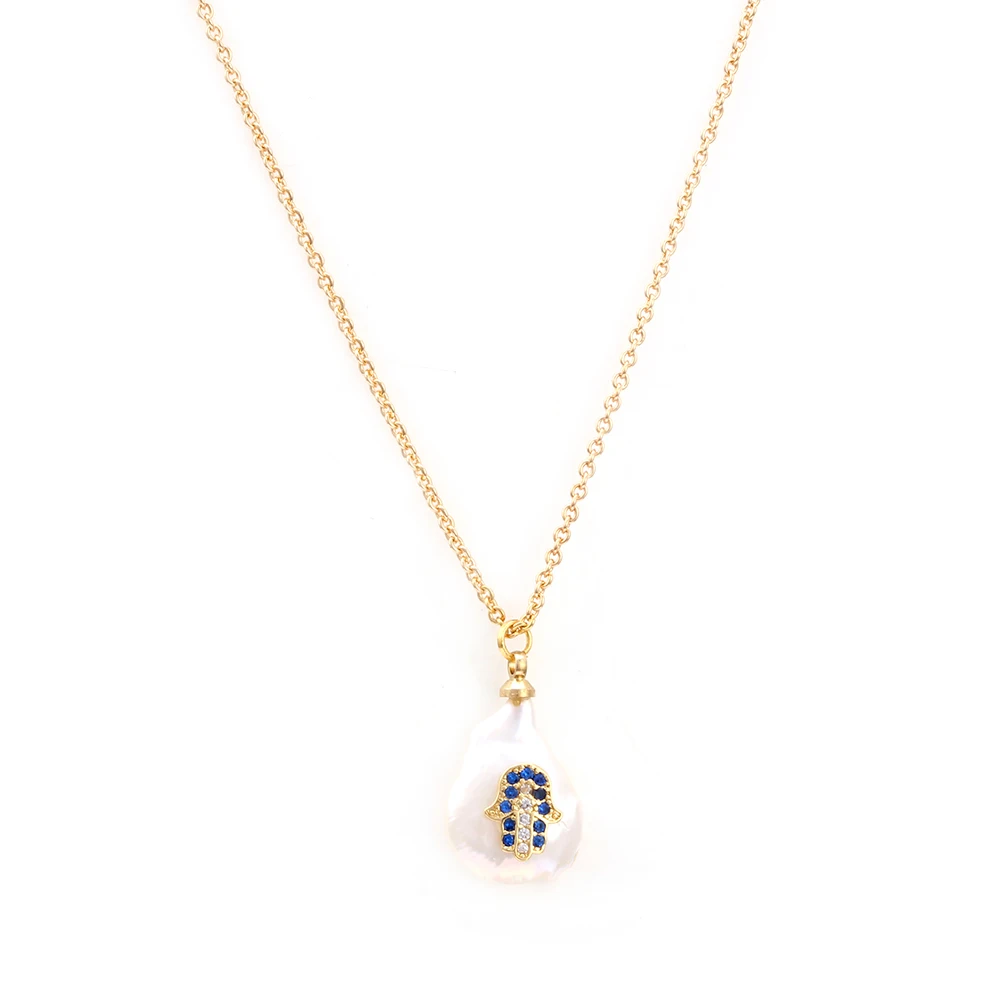 Сглаза длинный Жемчуг Золотое Ожерелье Подвеска цепочка Синяя рука Хамса ожерелье микро проложить Циркон Модные ювелирные изделия для женщин EY6270