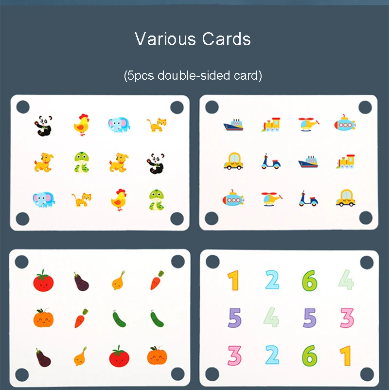 1. Выберите карту и положите ее на доску.2. Закройте доску.3. Заполните пространства на доске кусочками.4. Игрок может одновременно поднимать две крышки.