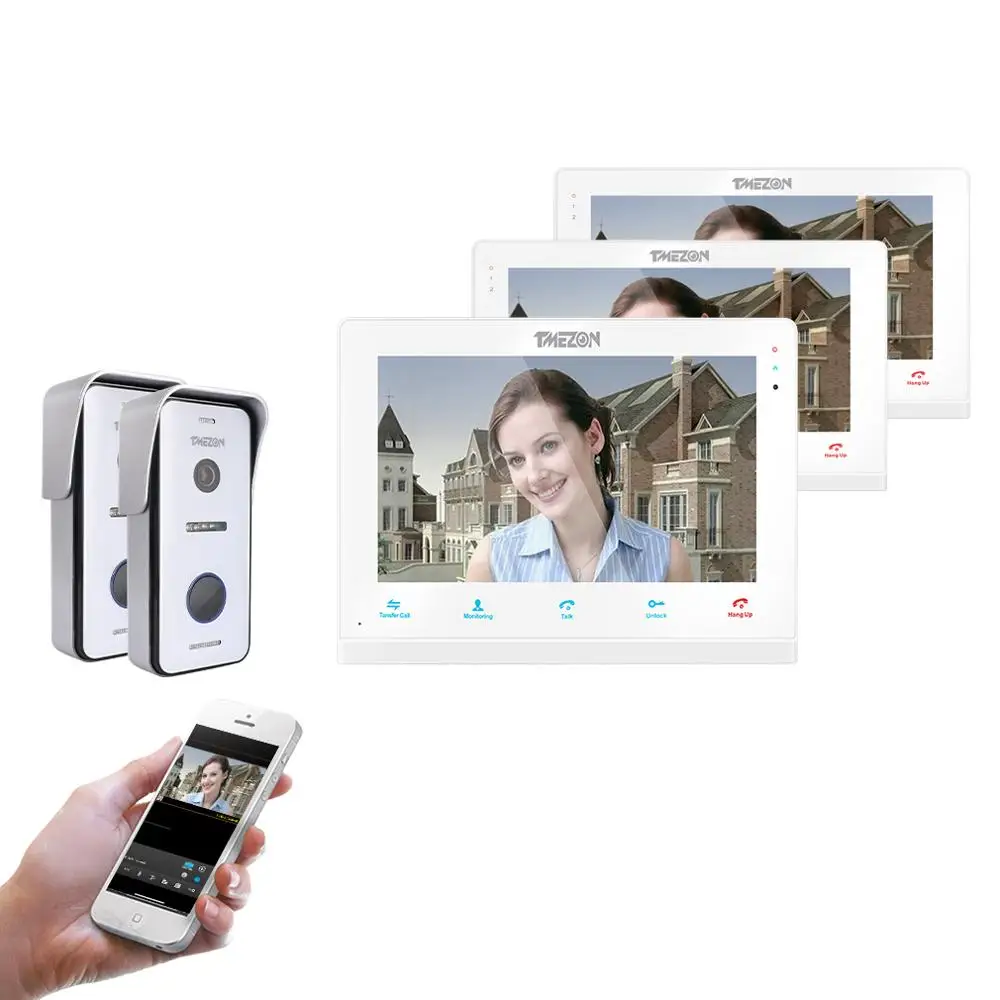 Беспроводной умный IP дверной звонок TMEZON, видеодомофон 10 дюймов + 2x7 дюймов, монитор экрана с проводной камерой 2x720P