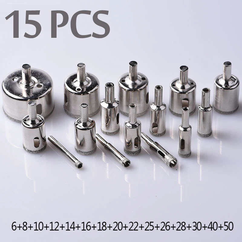 Алмазное сверло по мрамору, 6-50 мм, 681012141618202225262815 шт.компл. 304050 мм
