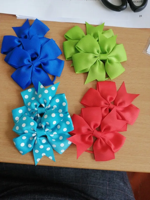 Посылка приехала за 3 недели в МО в общем пакете. Трэк отслеживался. Очень милые, красивые, яркие бантики. Сделаны аккуратно, следов клея нет. Рекомендуем!!!)
