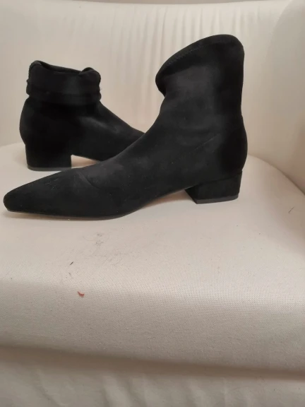 Ботиночки красивые, аккуратные. На 23,2 взяла 37, на капрон нога съезжает вперёд, в мыске есть место, на носочек нормально. По поводу замша или нет, сравнила с ботинками Zara, FABI, с остатками былой роскоши, по тактильным ощущениям разнятся. Эти ботинки мягче, нежнее и ворс подлиннее. Замшевые ботинки мужа Besson грубее, жёстче гораздо. Вообщем, если и подделка, то очень классная. Доставка быстрая, я довольна. В принципе можно было бы поменять на 23, но тогда возможно косточка на подъёме сильно выделялась бы. Спасибо продавцу)