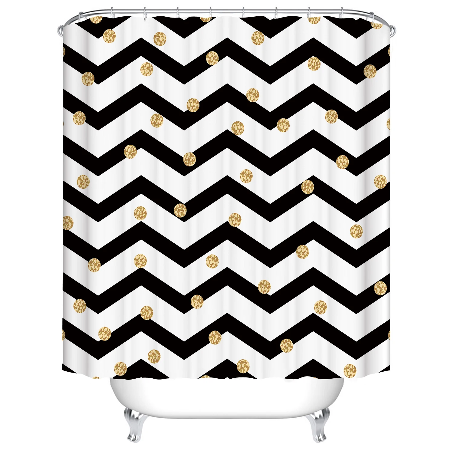 Занавеска для душа из полиэстера, водонепроницаемая, черно-белая