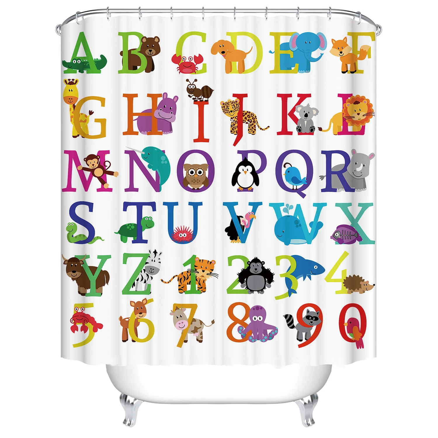 Занавеска для душа из полиэстера, водонепроницаемая, с милыми живот...