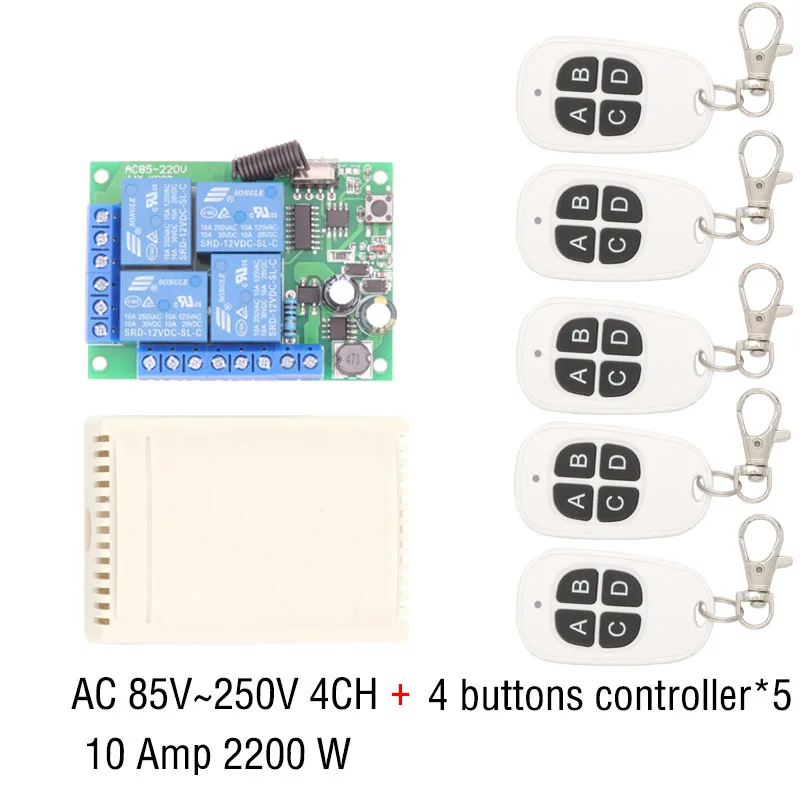 Универсальный беспроводной пульт дистанционного управления 433 МГц, 110 В, 220 В, 10Amp, 2200 Вт, 4CH релейный модуль приемника, РЧ контроллер, светильниксветодиодный открывалка