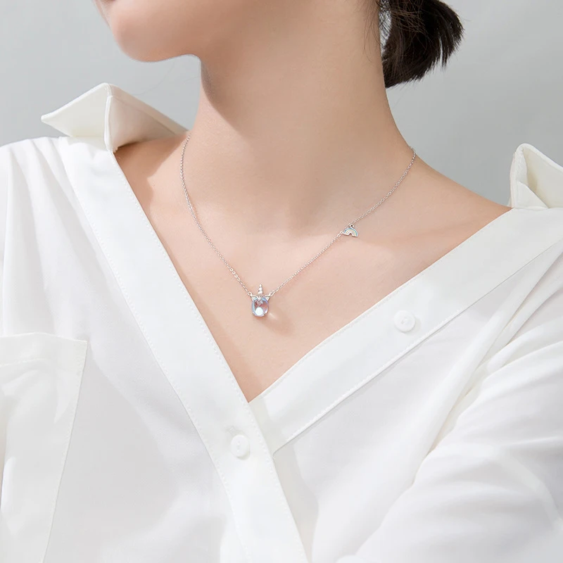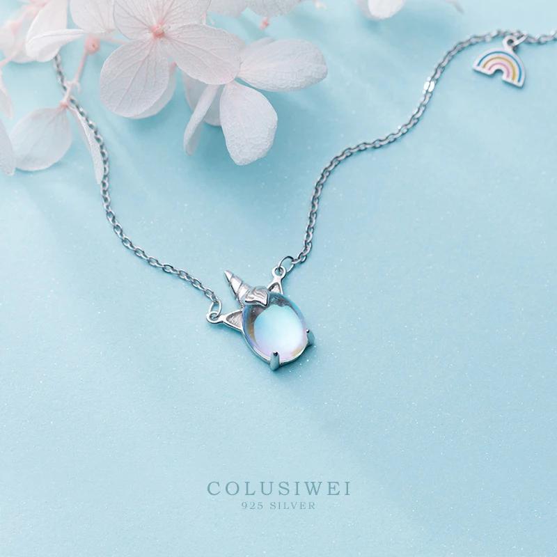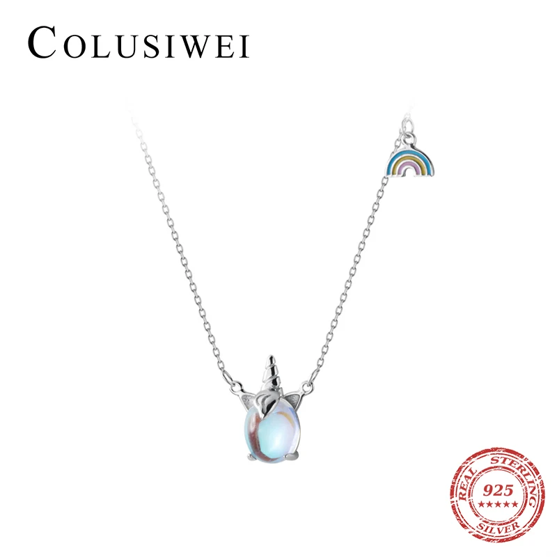 Colusiwei Единорог и Радуга кулон ожерелье Красочный Кристалл ожерелье s для женщин Настоящее серебро 925 проба ювелирные изделия