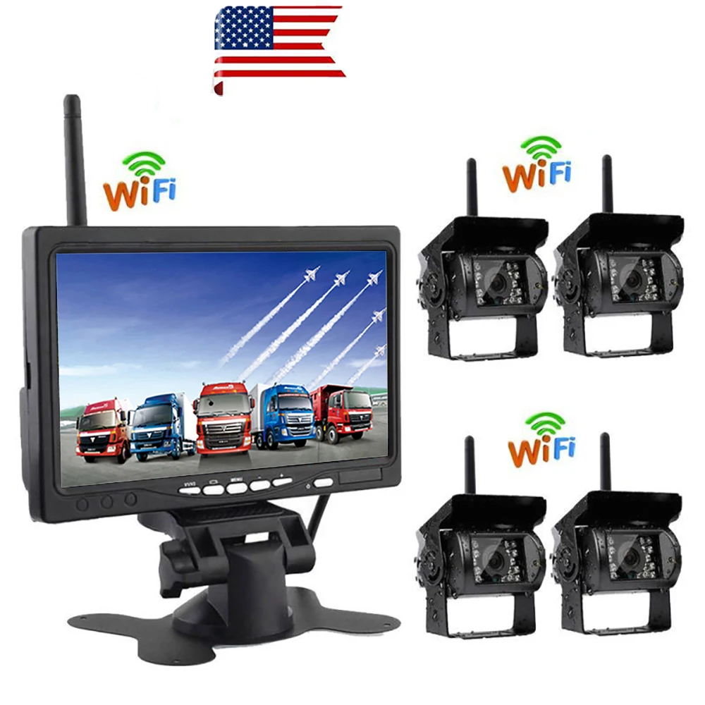 Podofo 7 "ЖК-дисплей Беспроводной автомобильный монитор заднего вида HD Дисплей Обратный помощь упаковочные Камера Системы для тележка на колесах автобуса транспортного средства