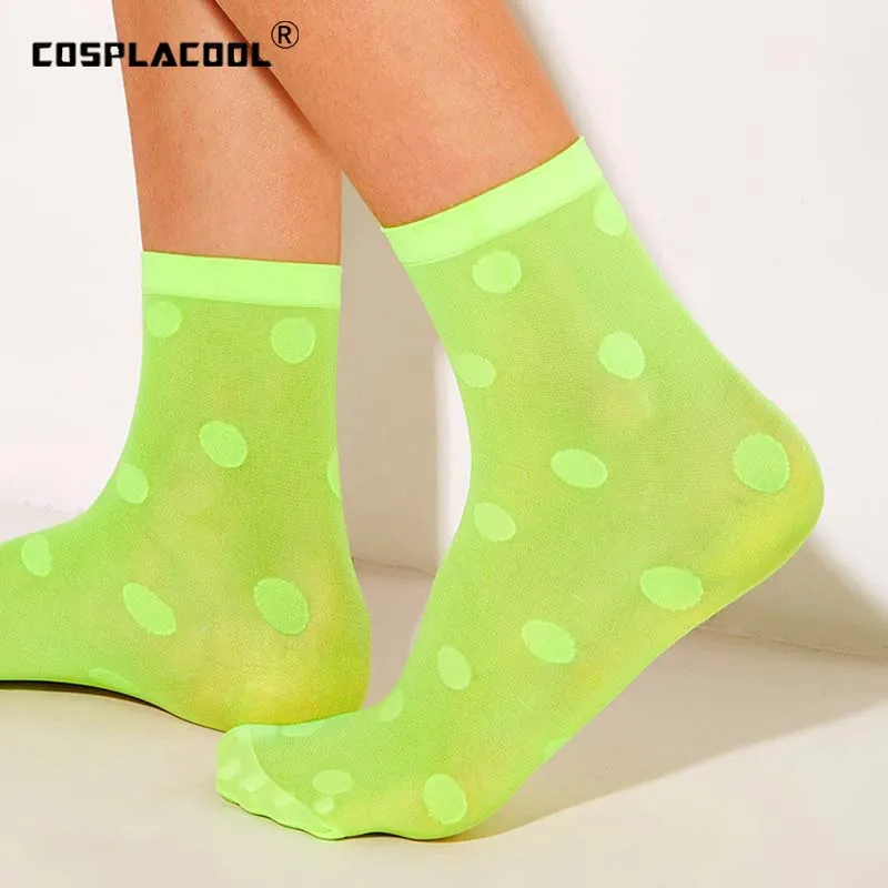COSPLACOOL блестящие зеленые прозрачные женские ультратонкие кружевные стеклянные носки женские шелковые сексуальные носки в горошек Harajuku