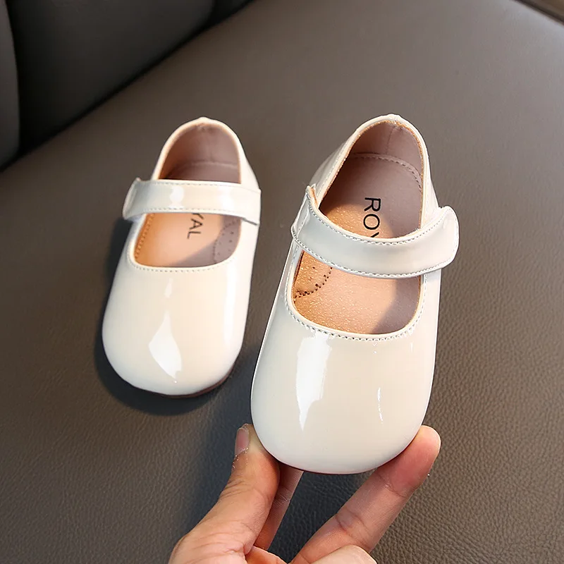 Новинка; Модная обувь принцессы из лакированной кожи с закрытым носком; Обувь для маленьких девочек; Модельные туфли черного цвета для девочек