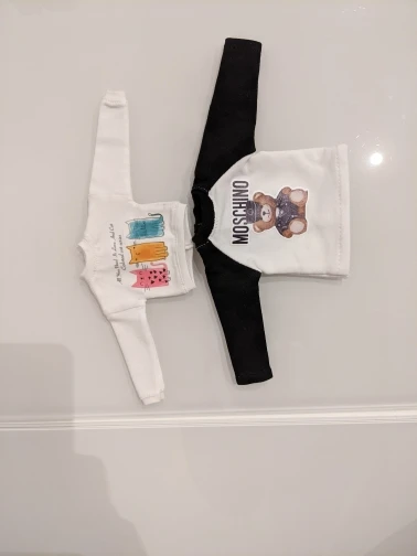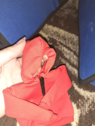 Когда он прибыл, я был доволен, но когда я проверил капот, я увидел огромное отверстие. Там не было стежков. Если вы хотите надеть толстовку, вам придется снять головку куклы, потому что липучка идет только на половину задней части толстовки. Это довольно тонкий материал, но совсем не просвечивается