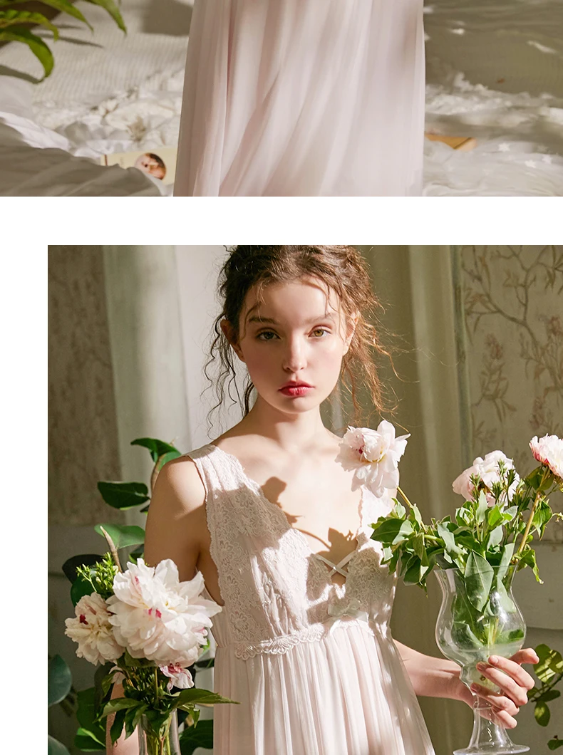 Ночная рубашка женская кружевная, без рукавов, с глубоким V-образным вырезом