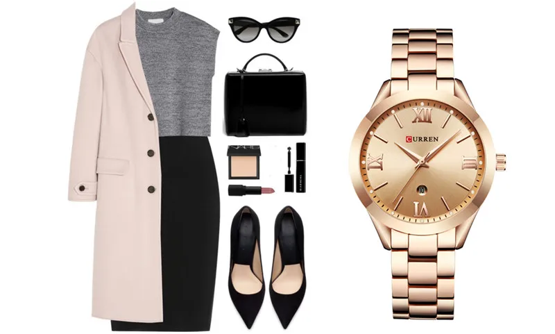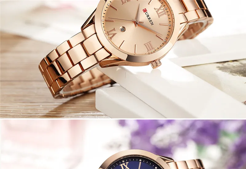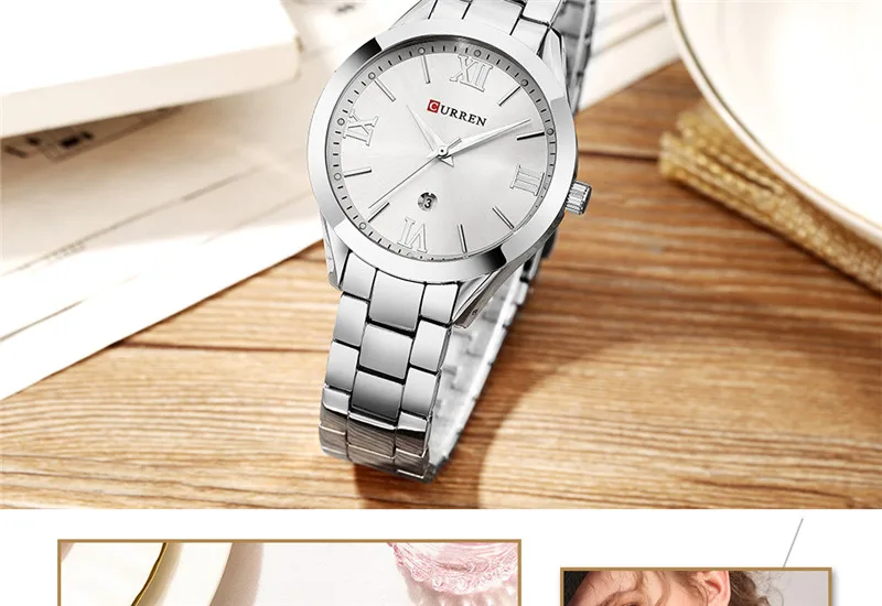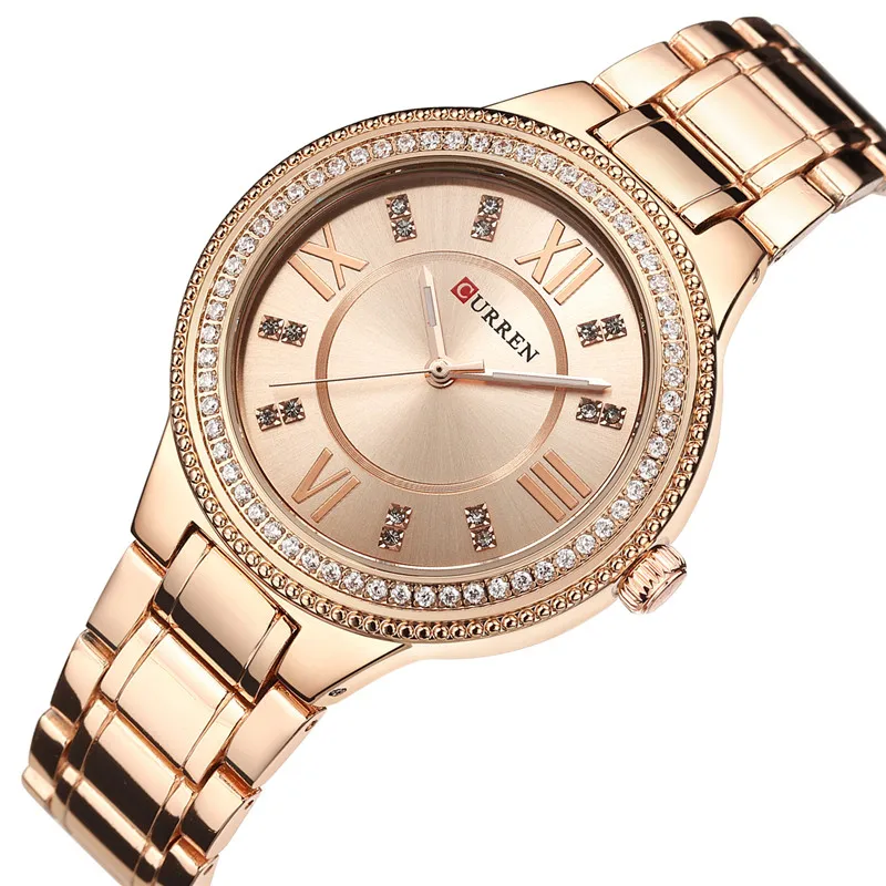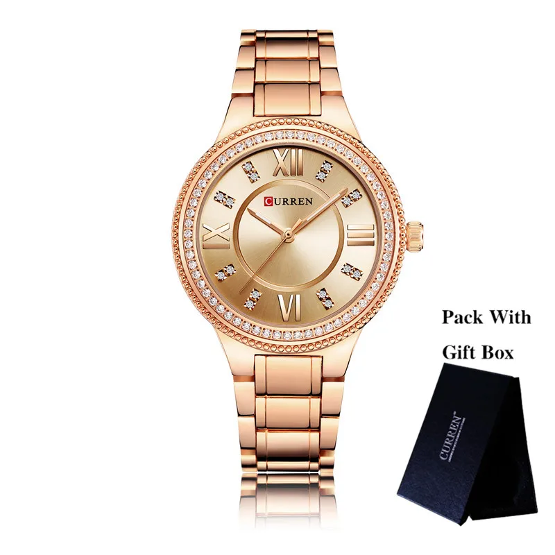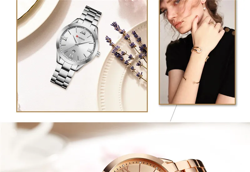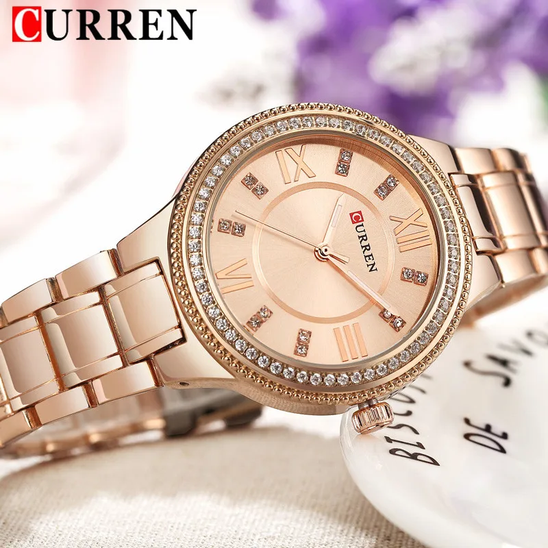 Часы CURREN женские наручные, модные брендовые роскошные классические повседневные с браслетом из нержавеющей стали, 9004